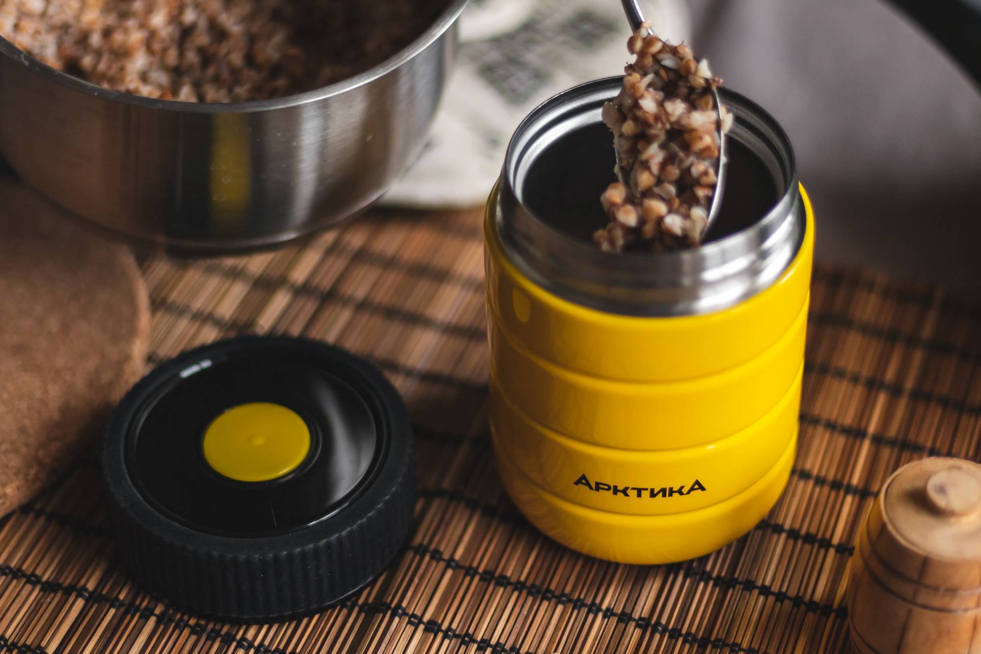 Удобно положить в рюкзак или сумку, не переживая о сохранности содержимого. Подходит термос для первых и вторых блюд, салатов и даже мороженого. Незаменим там, где нет возможности разогреть еду. Благодаря широкому горлу, его удобно промывать от жира и остатков пищи, а герметичная крышка не даст еде протечь.