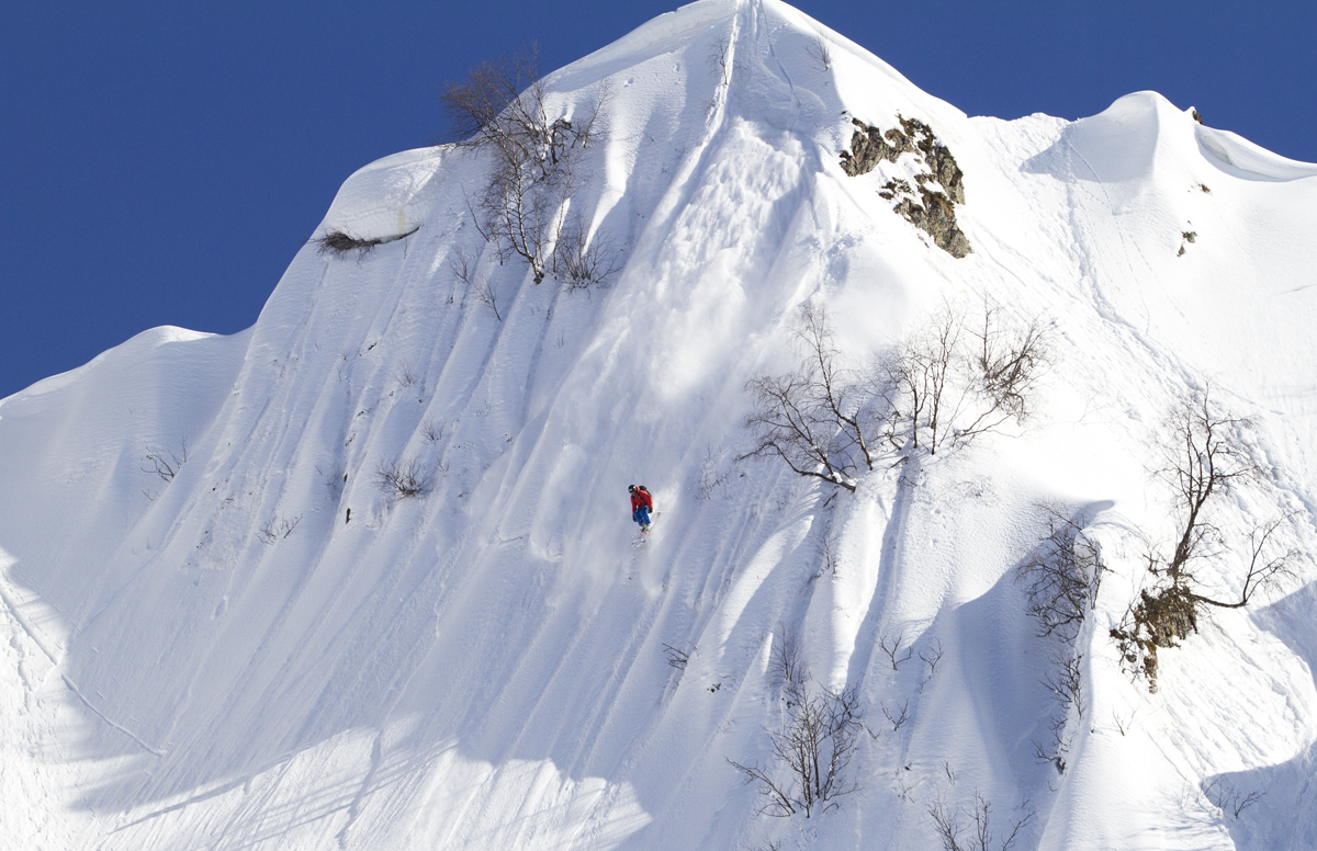 – Вообще фрирайд – это спуск «первым следом», т.е. или там, где до тебя за всю историю спустилось считанное количество людей или вообще никто. Но и первый след после снегопада около трасс на курорте тоже можно назвать фрирайдом, правда, есть большая разница, где и как быть первым.