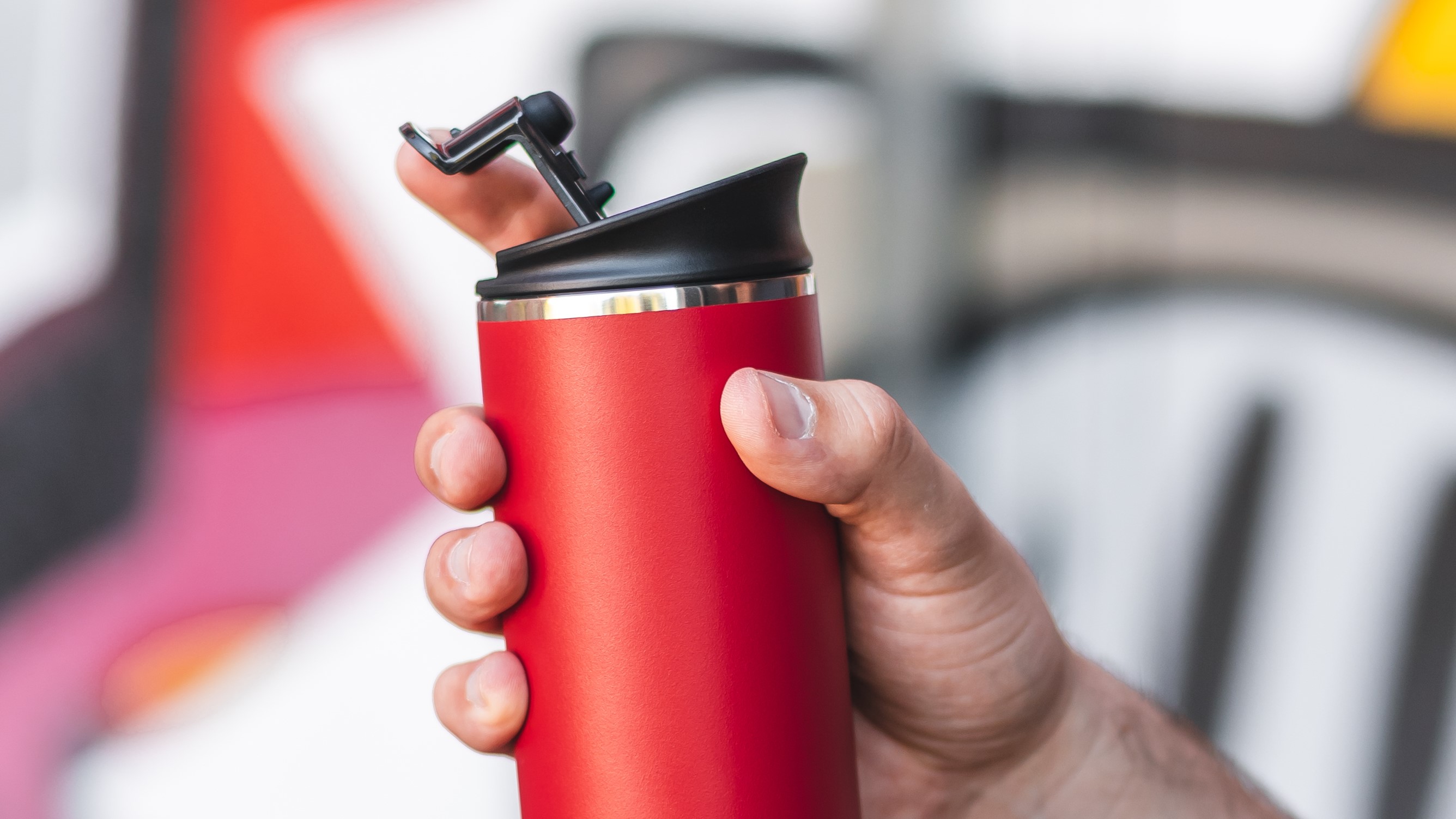 Первое, чем отличается термокружка от термоса – применение. Термокружка рассчитана на то, чтобы пить из нее во время движения, на ходу и часто – одной рукой. Например, в машине, во время прогулки, в офисе и т.д. Поэтому у термокружки вместо крышки-чашки отверстие, закрытое клапаном с защелкой, или специальная поилка.