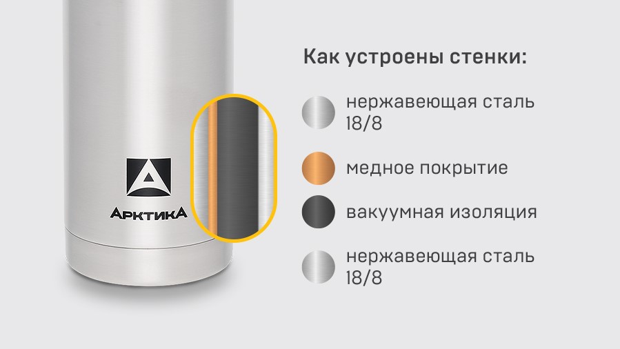 Многослойная структура термоса обеспечивает его изотермические свойств.