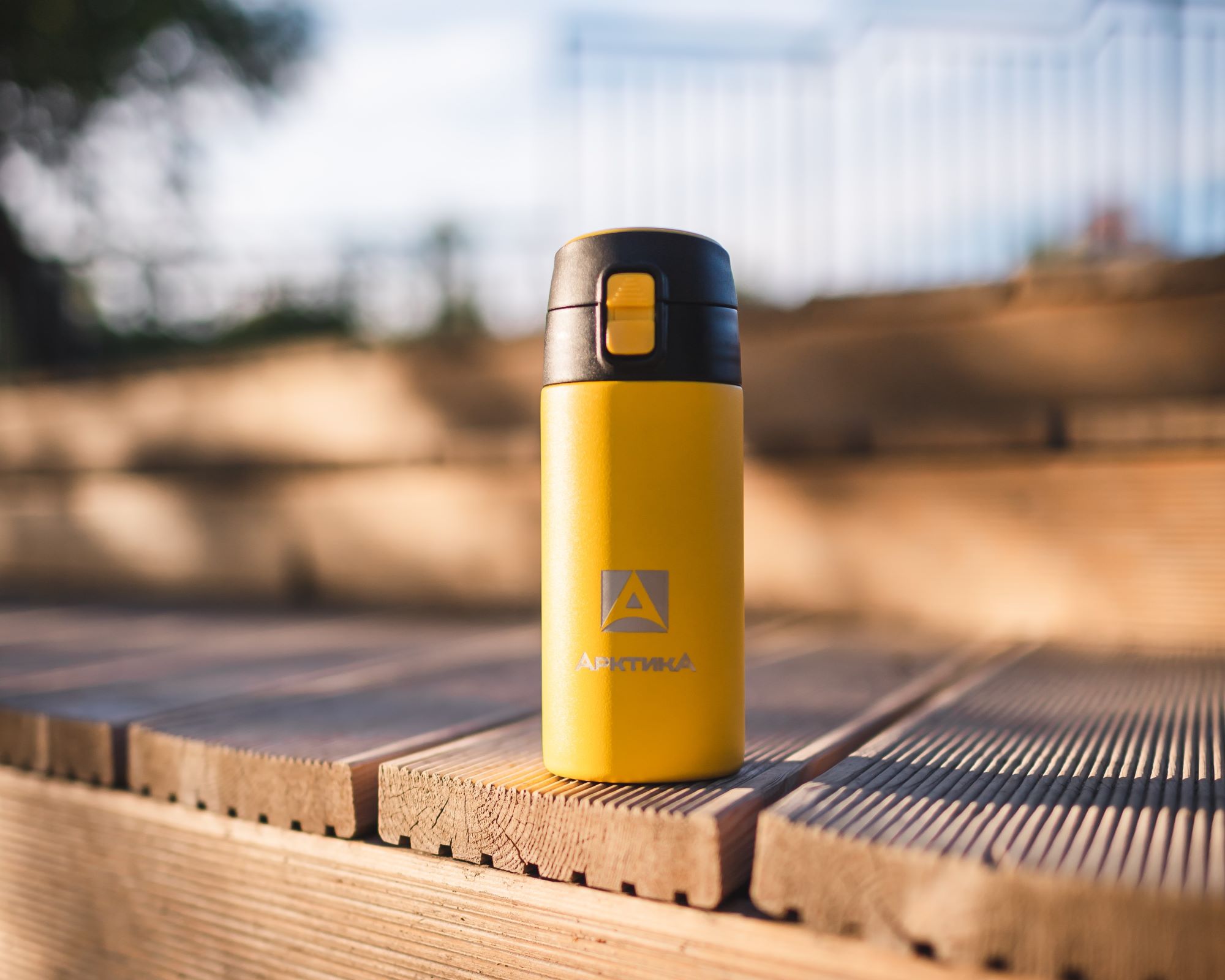 Если вы часто держите телефон в одной руке, а кружку – в другой, советуем обратить внимание на термокружки с кнопкой, которые открываются в два движения. У «Арктики» такие есть – это серия 705 с широкой поилкой и «Сититерм» с карабином для переноски. Первым движением разблокируем замок, вторым – открываем термокружку.
