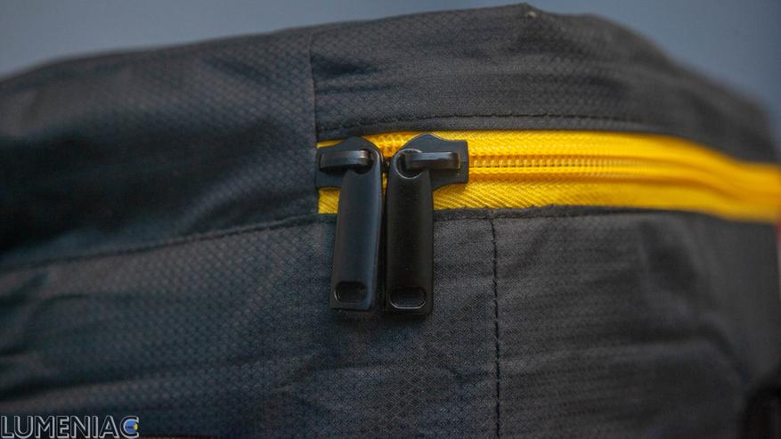 Нижняя часть напоминает покрытие борцовского ковра – выглядит крепко и цепко. Хорошее решение, так как эта часть будет и протираться сильнее, и принимать изрядную по весу в силу 30-литрового объема нагрузку.
