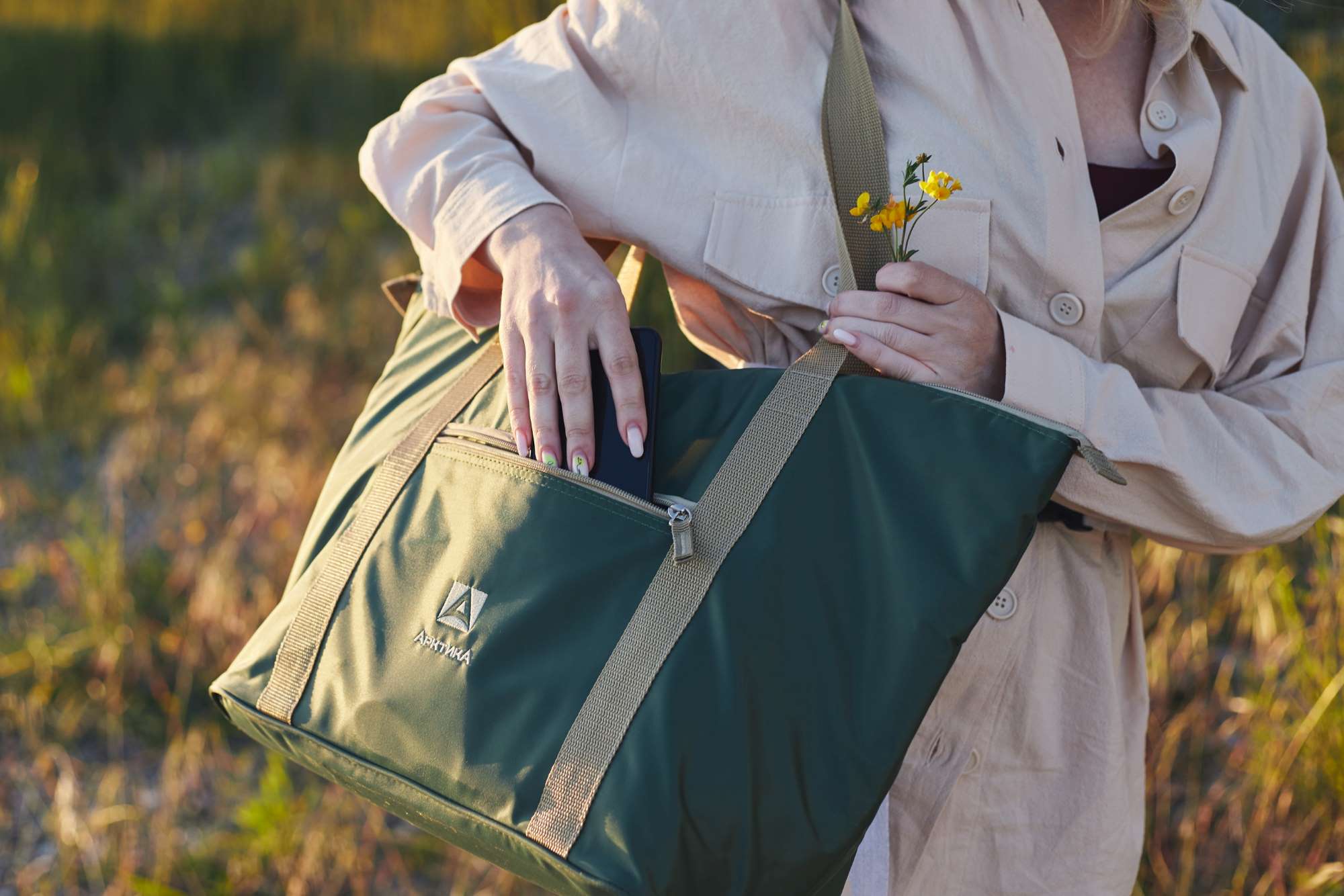 Термосумка для покупок, в магазин или на рынок, а также для продуктов нестандартных габаритов. Благодаря длинным ручкам, практичной и стильной форме её можно носить с собой каждый день и использовать как обычную сумку (например, для спортивной или пляжной одежды) или компактно сложить и убрать.