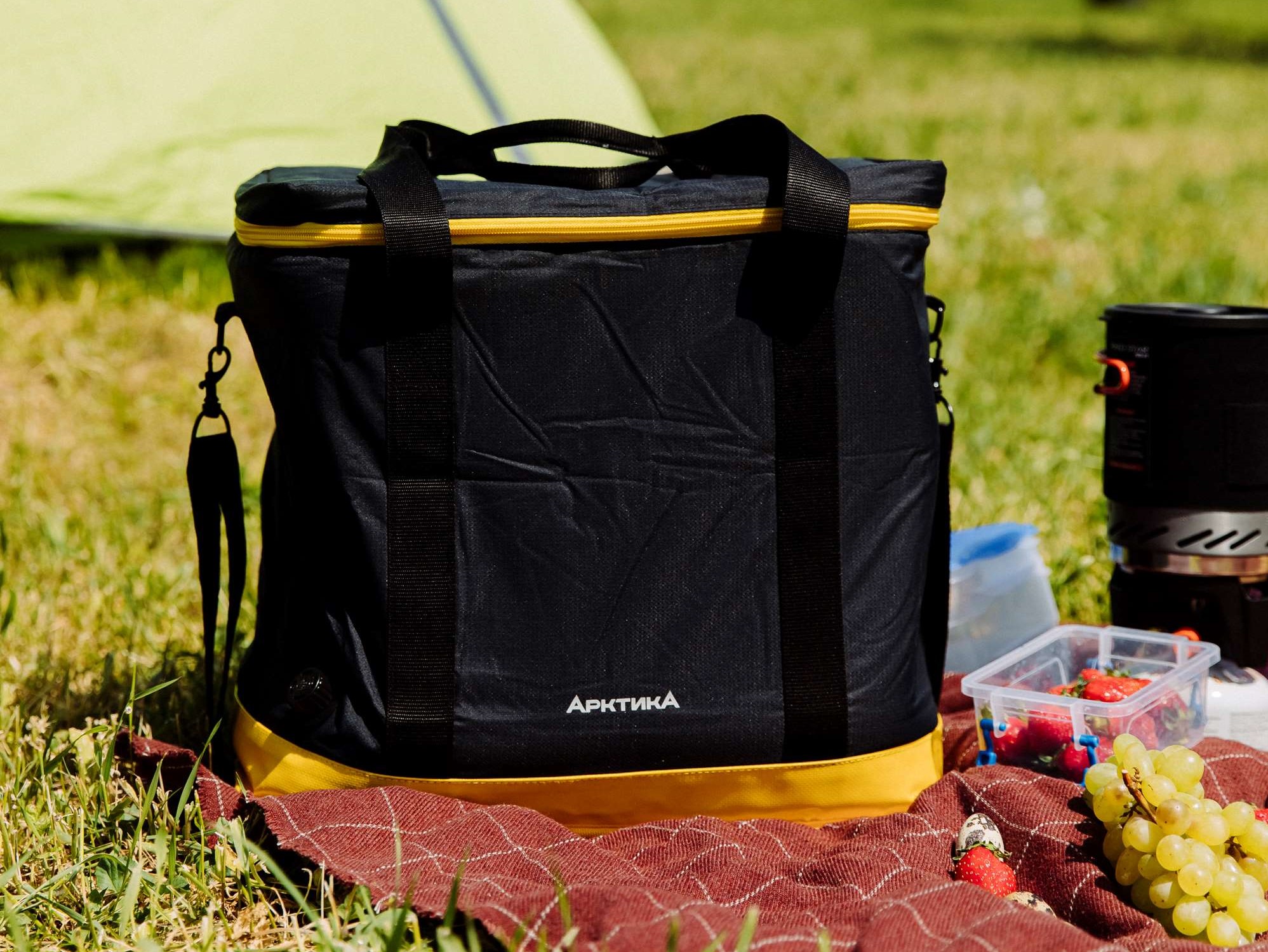 взять на пикник или «на шашлыки»В термосумке малого и среднего объема от 10 до 30 л можно взять продукты на всю компанию, а модели с готовым комплектом посуды и приборов раз и навсегда решат вопрос сервировки.