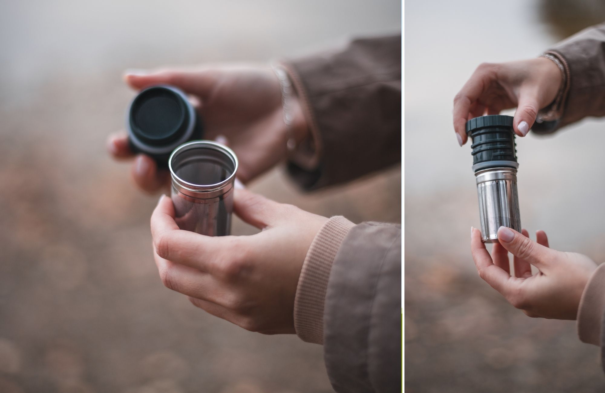 Если чайные пакетики и быстро растворимый кофе не про вас, то съемное ситечко для термоса – лучшее решение проблемы застрявших во рту чаинок и кофейной гущи, скрипящей на зубах. Само ситечко крепится к пробке термоса, легко откручивается, но при этом надежно защищает содержимое. Это дает возможность заваривать сортовые напитки, добавлять ягоды, листья мяты или, например, чабреца, не опасаясь того, что все потом придется процеживать. Еще с помощью ситечка проще контролировать степень крепости и убирать заварку в любой момент, не переживая, что напиток будет горчить.