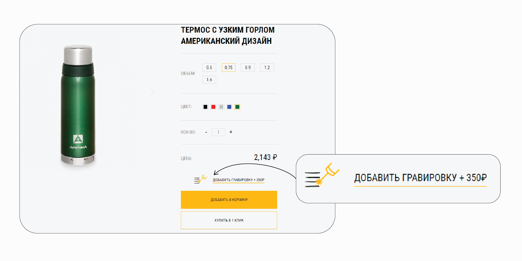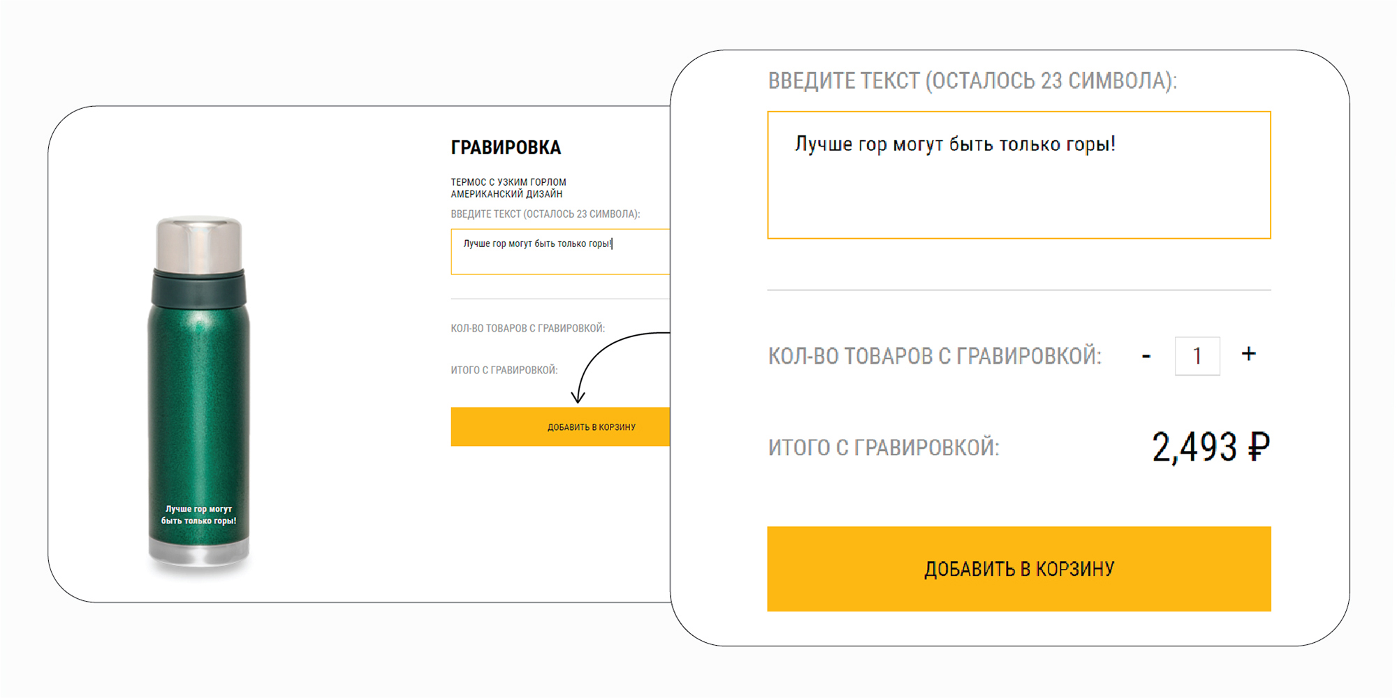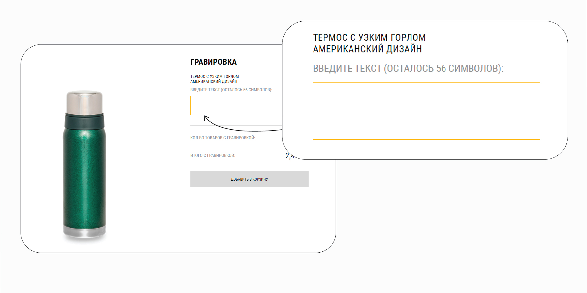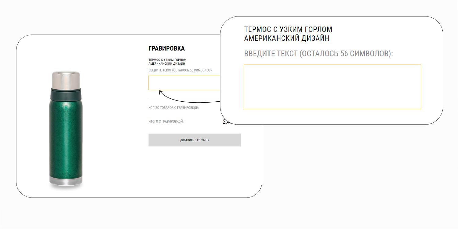 Выберите понравившийся термос или кружку и нажмите на кнопку «Добавить гравировку».