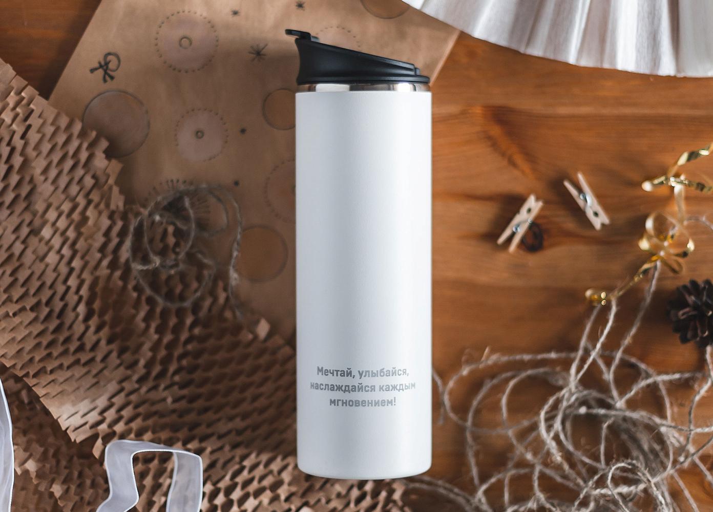 Теперь вы можете самостоятельно в пару кликов сделать термос еще теплее – украсить любимой фразой, пожеланием или девизом при заказе онлайн прямо на сайте.