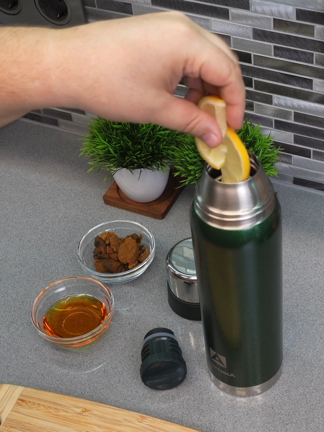 Однако если настоять чагу в термосе и добавить при этом дольки имбиря и лимона, а также мед или сироп топинамбура, то это придаст больше вкуса и витаминов вашему отвару, и напиток сразу заиграет новыми красками.