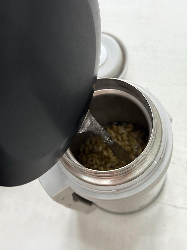 Насыпать зерно в термос и залить едва остывшим кипятком (90℃).Почему не стоит заваривать овес в термосе кипящей водой? Дело в том, что слишком высокая температура сократит концентрацию полезных микроэлементов в напитке.