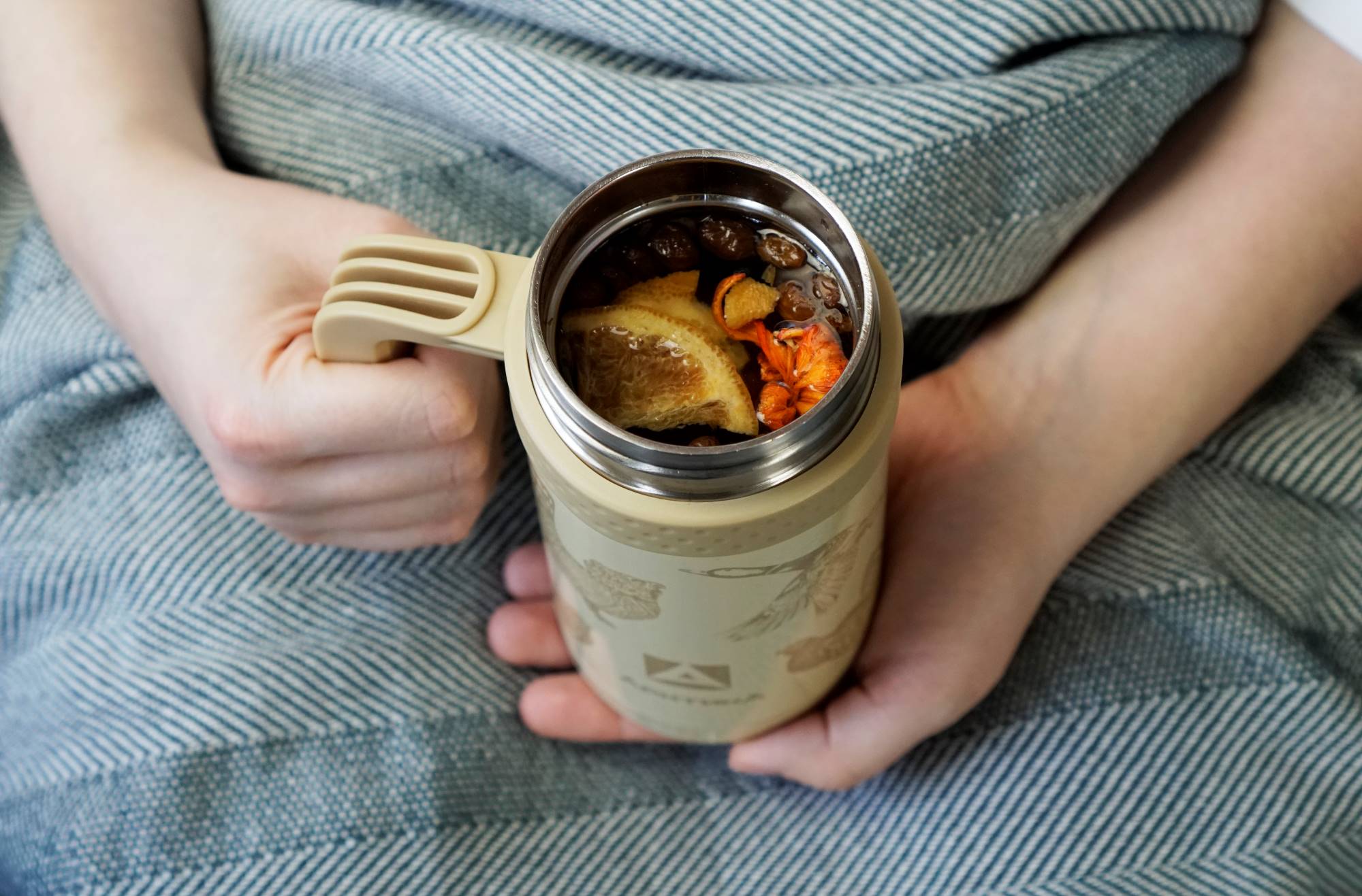 Для облегчения дыхания заварите листья мяты, мелиссы, шалфея или эвкалипта – их мятный аромат дополнит как чай, так и настой из ягод. Преимущество термоса заключается в том, что напиток настаивается, не остывая и сохраняя комфортную для питья температуру.
