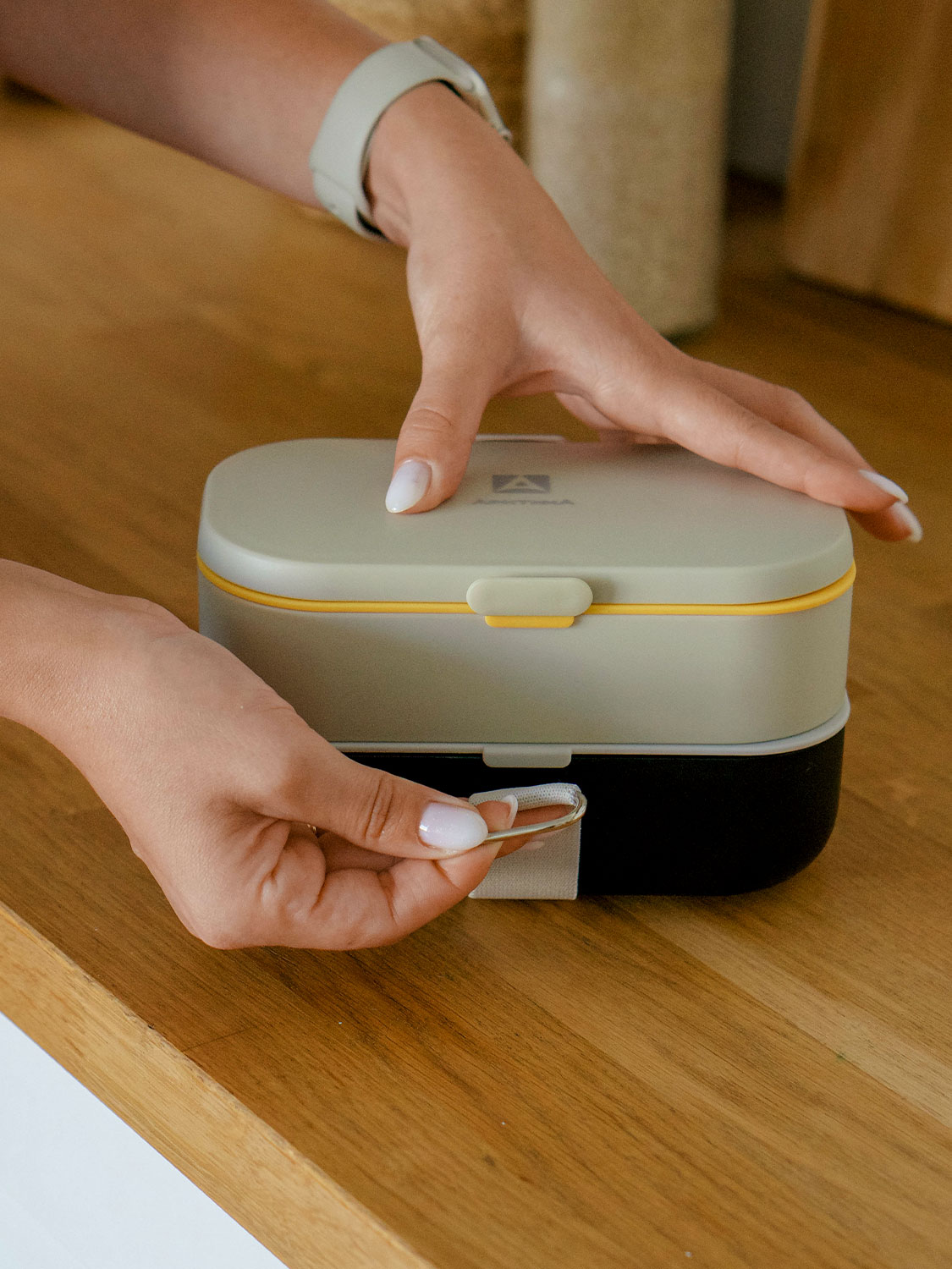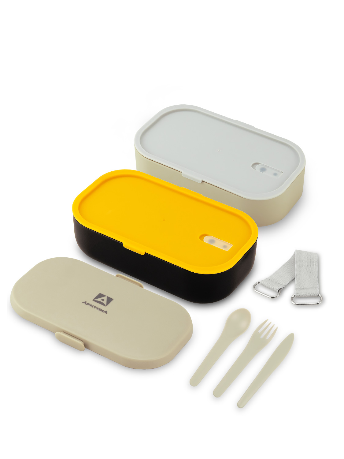 Благодаря плотной резинке контейнеры надежно прилегают друг к другу, не разваливаются при переноске и занимают минимум места. Простота использования и надежная защита от протечек делает эту модель идеальной для школьных и офисных обедов, а также полезных перекусов. При необходимости ланч-бокс можно разогревать в микроволновой печи и мыть в посудомоечной машине. Ланч-бокс «Арктика» изготовлен из проверенных пищевых материалов, полностью безопасных для здоровья и не выделяющих вредные бисфенолы (BPA free).