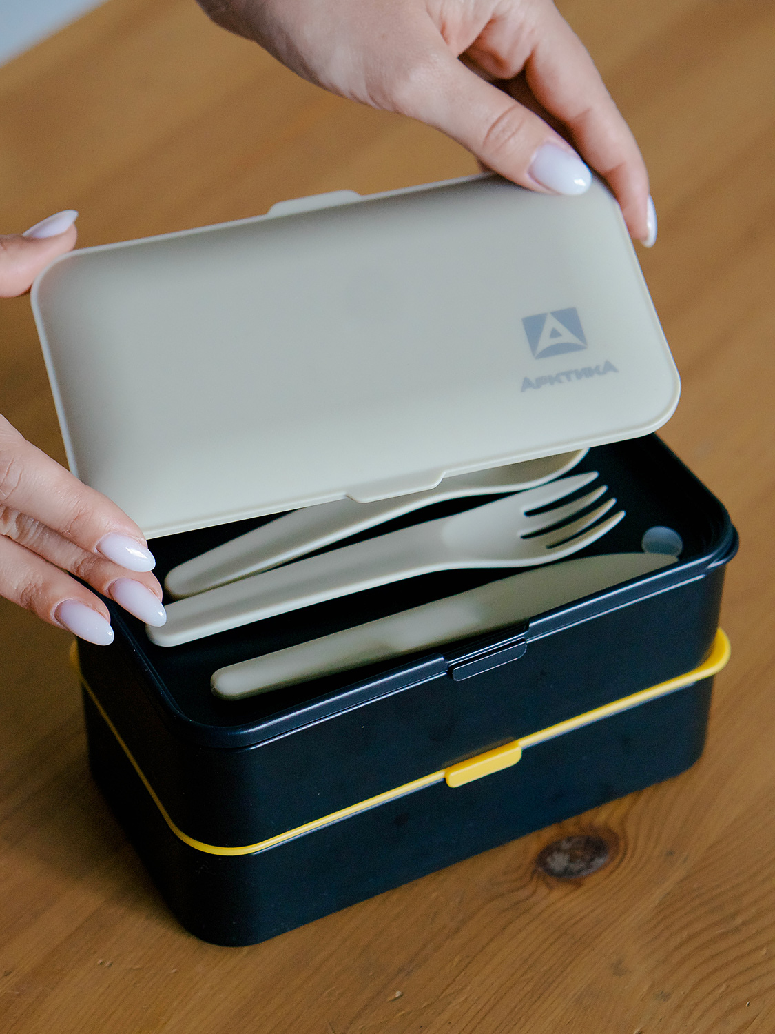Благодаря плотной резинке контейнеры надежно прилегают друг к другу, не разваливаются при переноске и занимают минимум места. Простота использования и надежная защита от протечек делает эту модель идеальной для школьных и офисных обедов, а также полезных перекусов. При необходимости ланч-бокс можно разогревать в микроволновой печи и мыть в посудомоечной машине. Ланч-бокс «Арктика» изготовлен из проверенных пищевых материалов, полностью безопасных для здоровья и не выделяющих вредные бисфенолы (BPA free).