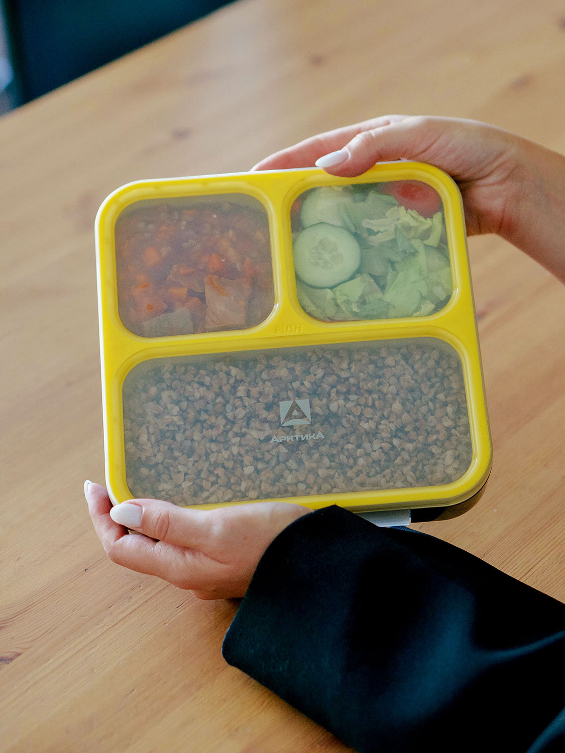 Используйте плоский ланч-бокс «Арктика» каждый день: с ним удобно организовать полноценный рацион и рассчитывать граммовку порций, брать с собой в дорогу или на пикник нарезку, мягкие фрукты, ягоды или орехи. При необходимости ланч-бокс можно разогревать в микроволновой печи, мыть в посудомоечной машине (без крышки), а также хранить в холодильнике. Ланч-бокс «Арктика» изготовлен из проверенных пищевых материалов, полностью безопасных для здоровья и не выделяющих вредные бисфенолы (BPA free).