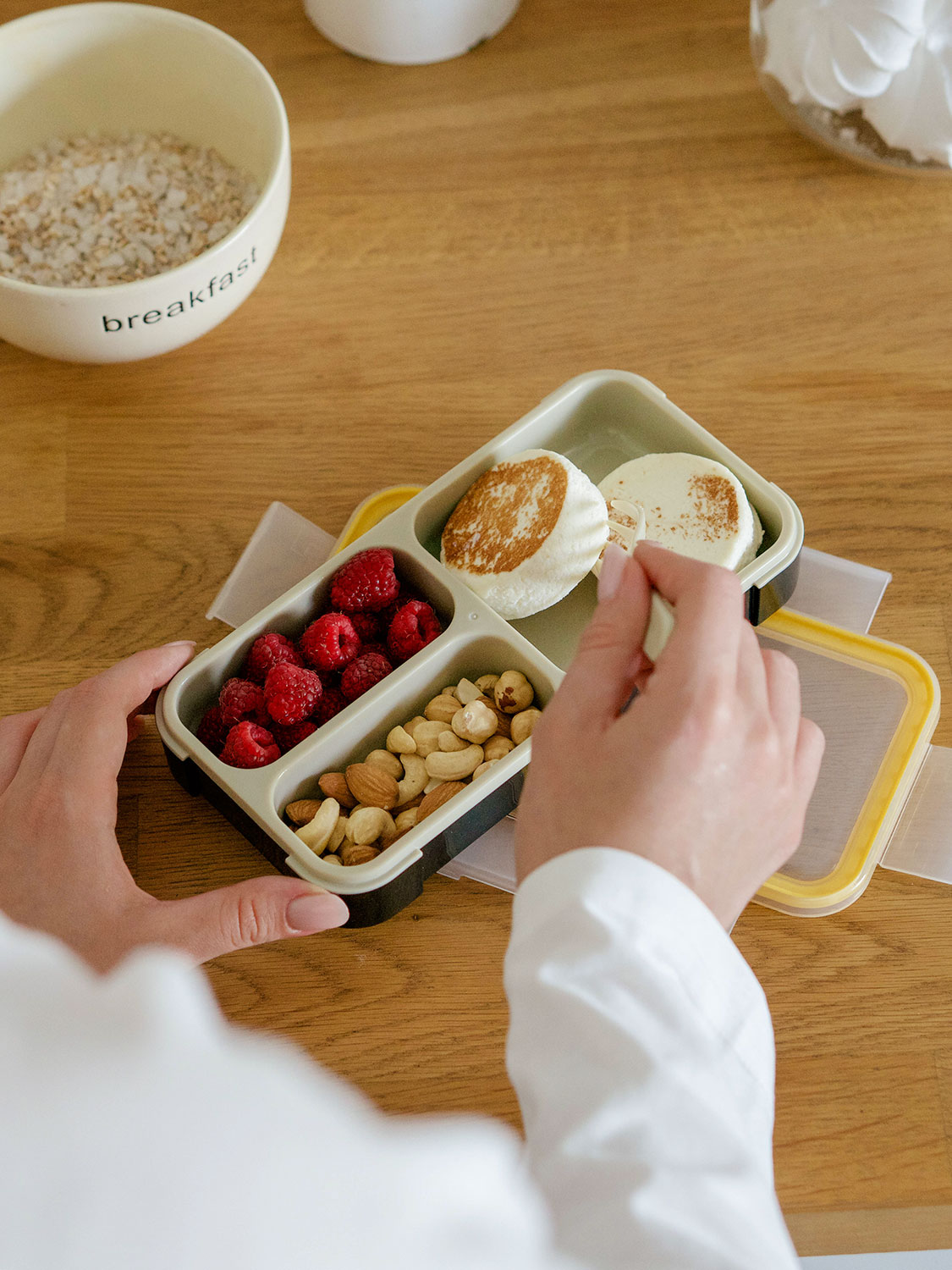 Миниатюрный ланч-бокс на защелках с тремя отсеками возьмет на себя сохранность небольших порций и сэкономит максимум места в сумочке или рюкзаке. В нем можно переносить как горячие, так и холодные блюда. За герметичность отвечают силиконовая прослойка по всему периметру и защищенные от случайного открывания защелки. Также вы можете использовать эту модель в качестве таблетницы или органайзера для мелочей.