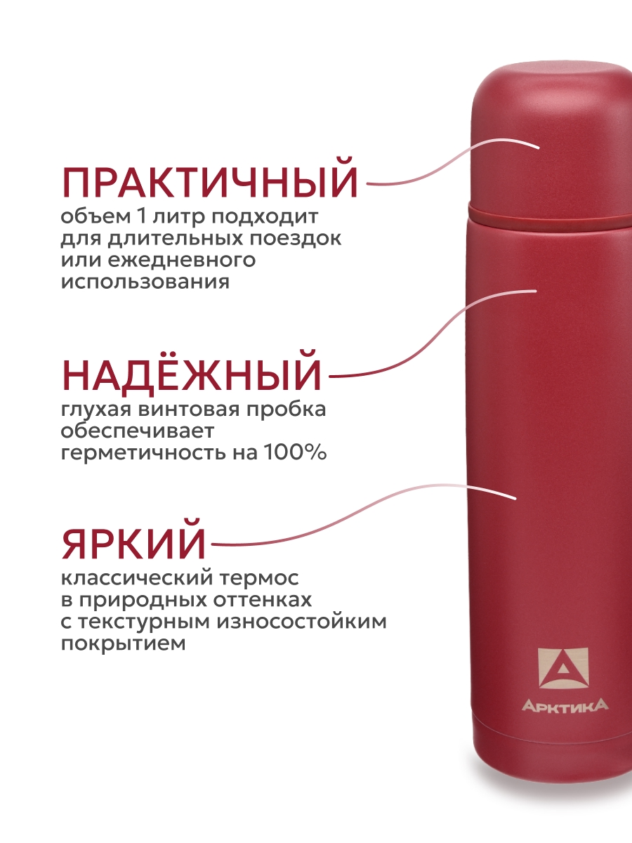 Термос 1л серии 101 «Гранат» текстурный с узким горлом
