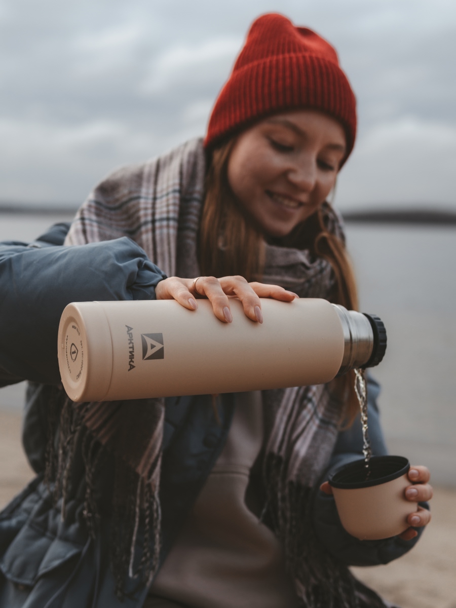 Термос 1л серии 101 бежевый текстурный с узким горлом