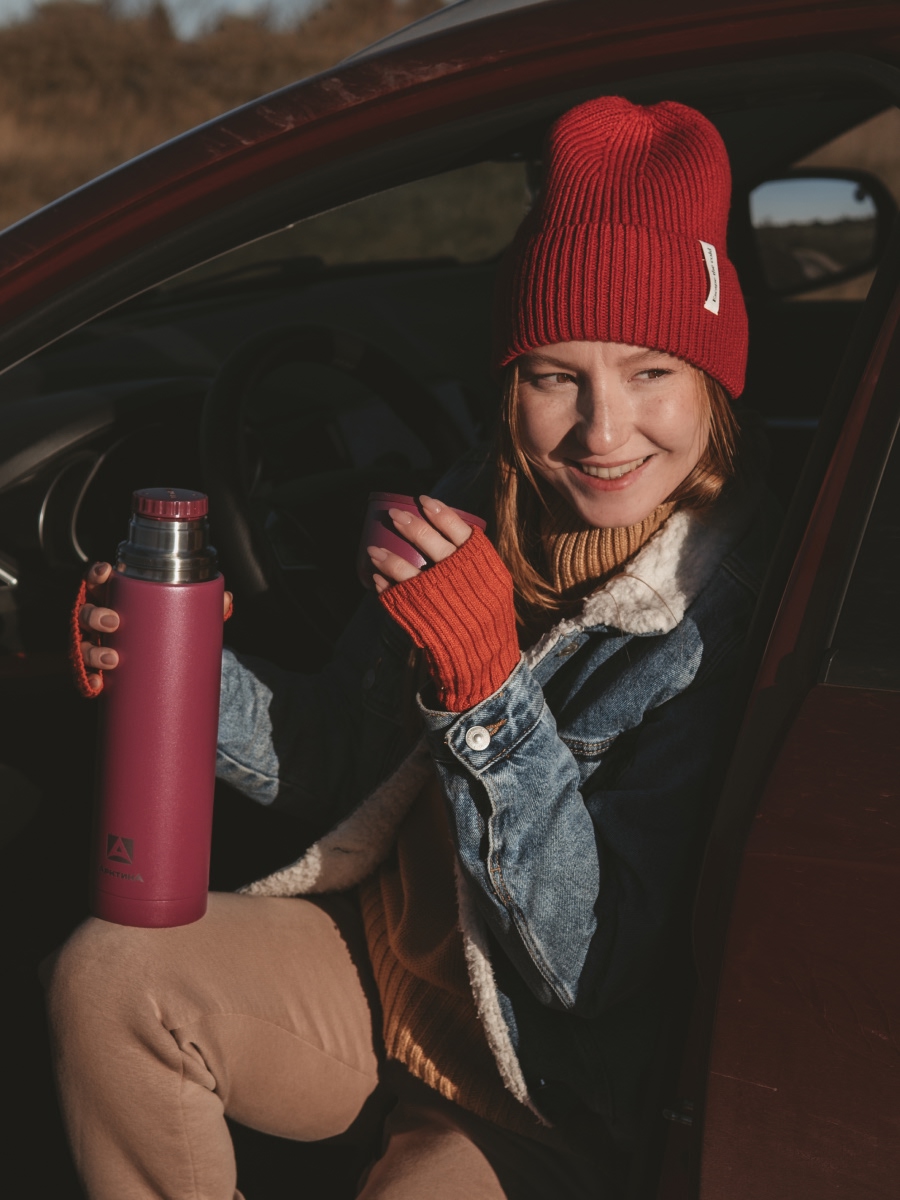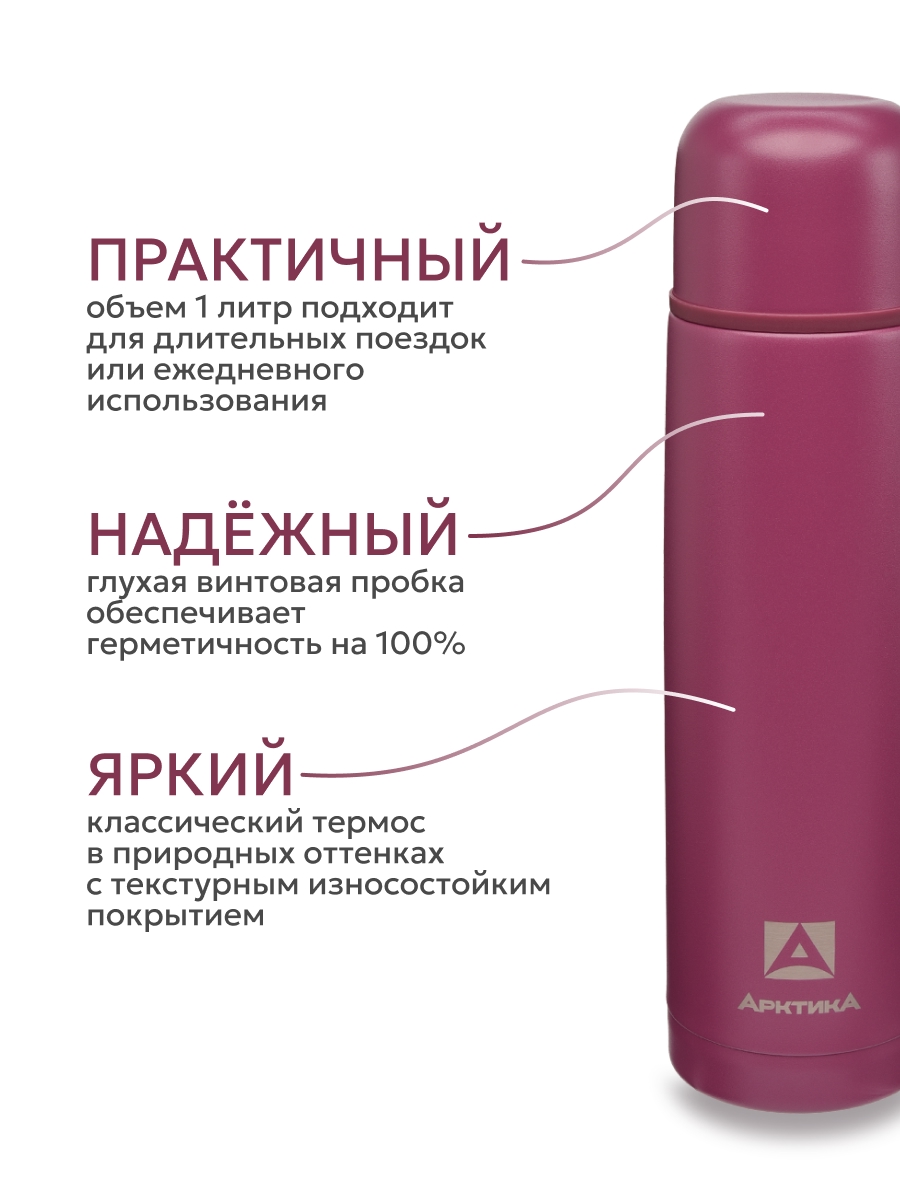 Термос 1л серии 101 «Вишня» текстурный с узким горлом
