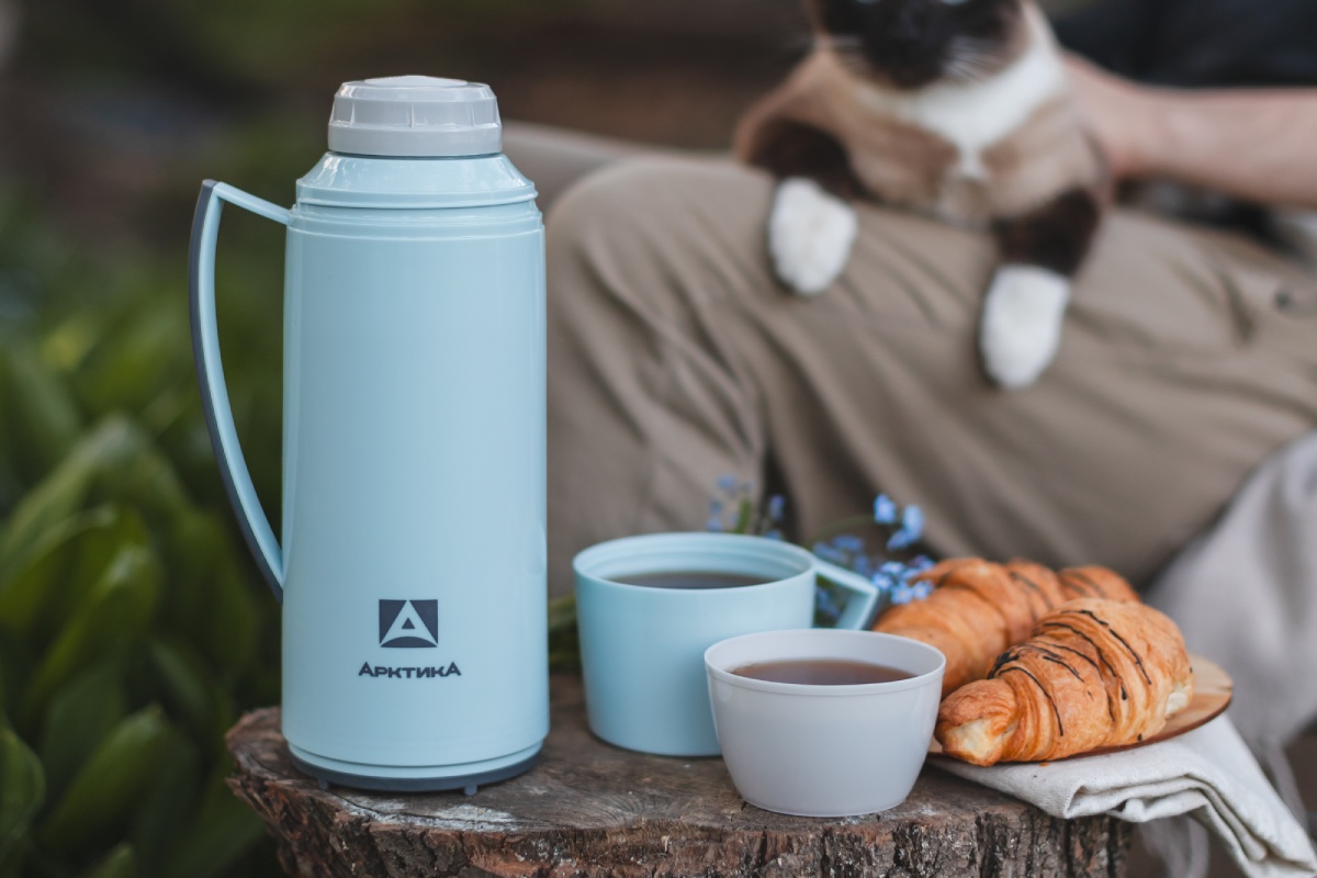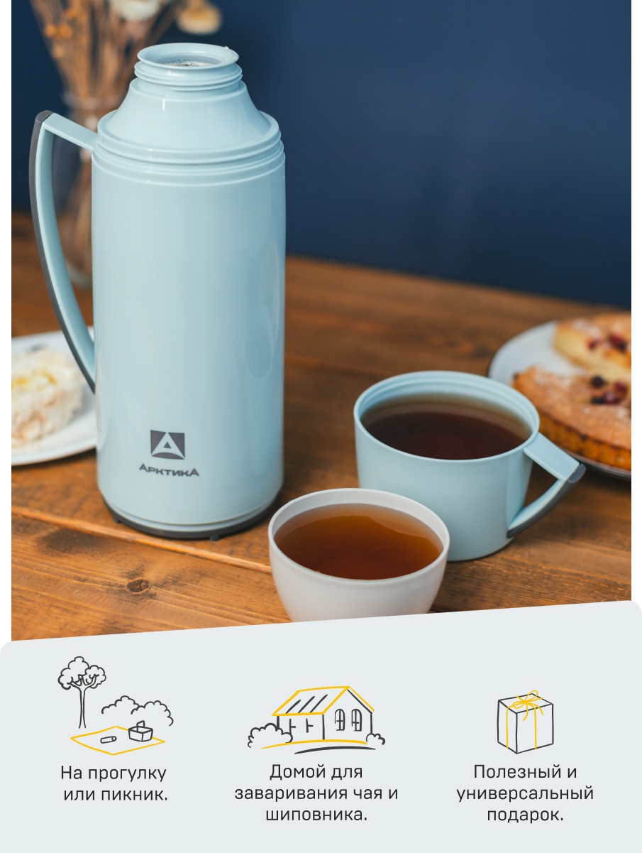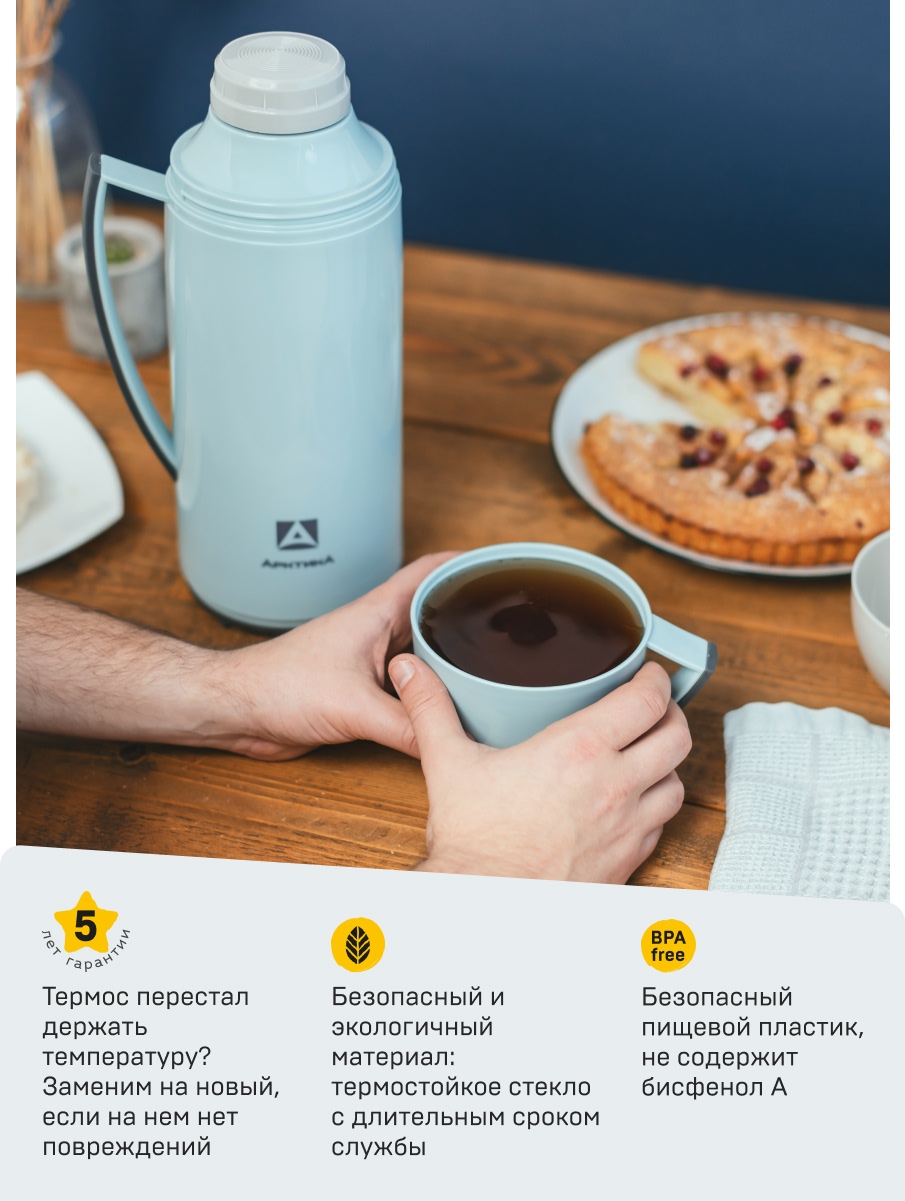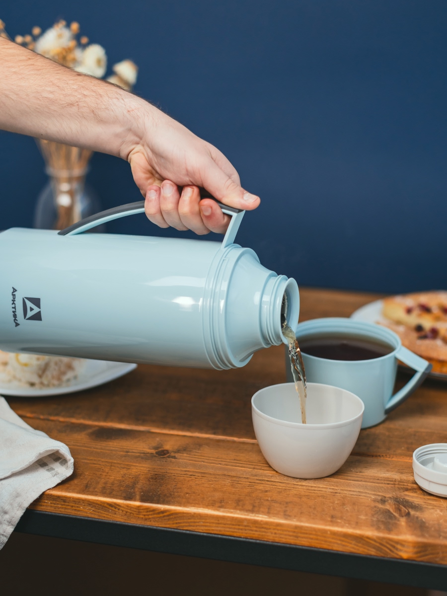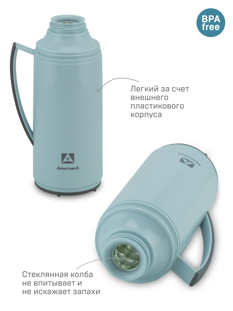 Термос 1.7л серии 1010 голубой стеклянный