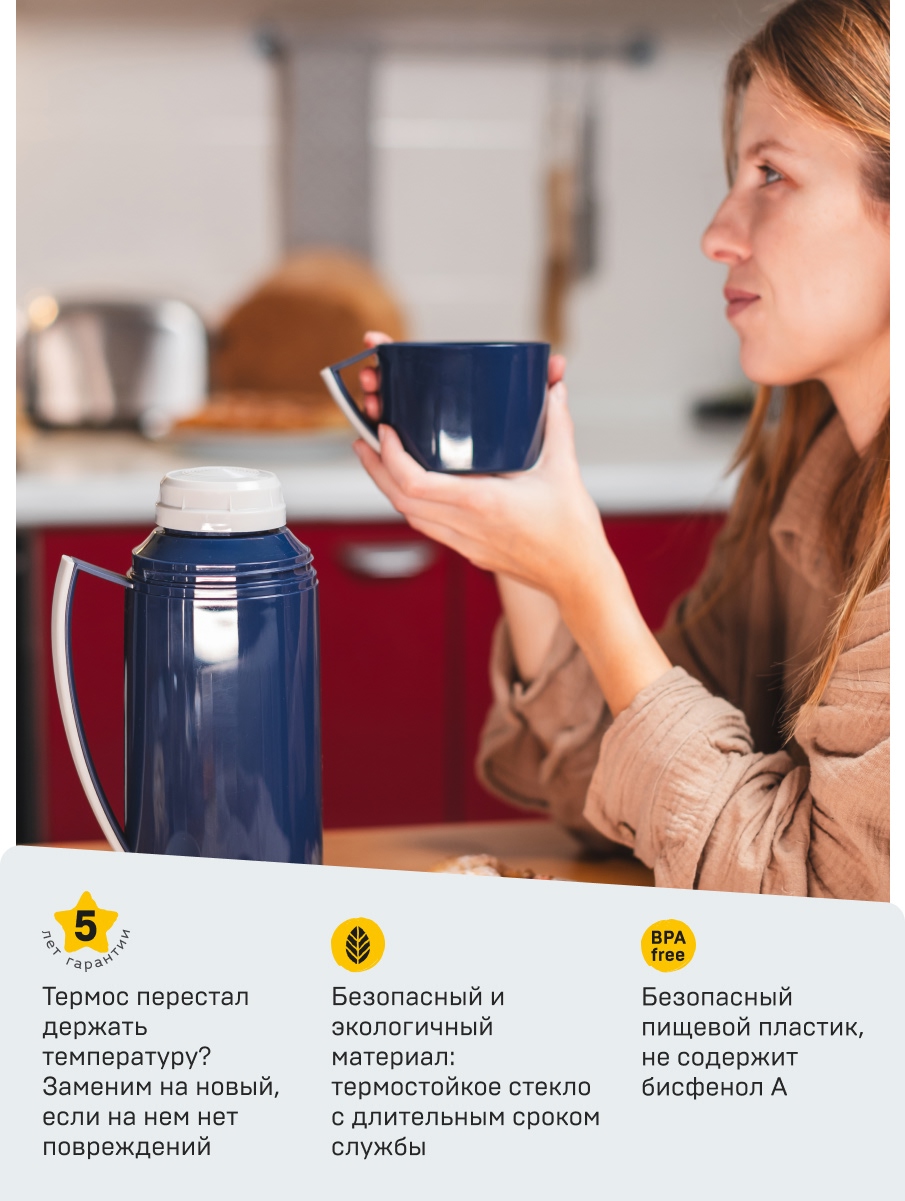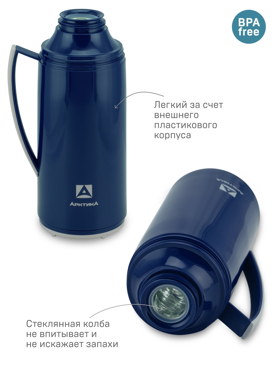 Термос 1.7л серии 1010 синий стеклянный