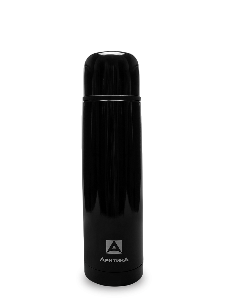 Глянцевый черный термос с узким горлом на 1л (уценка)