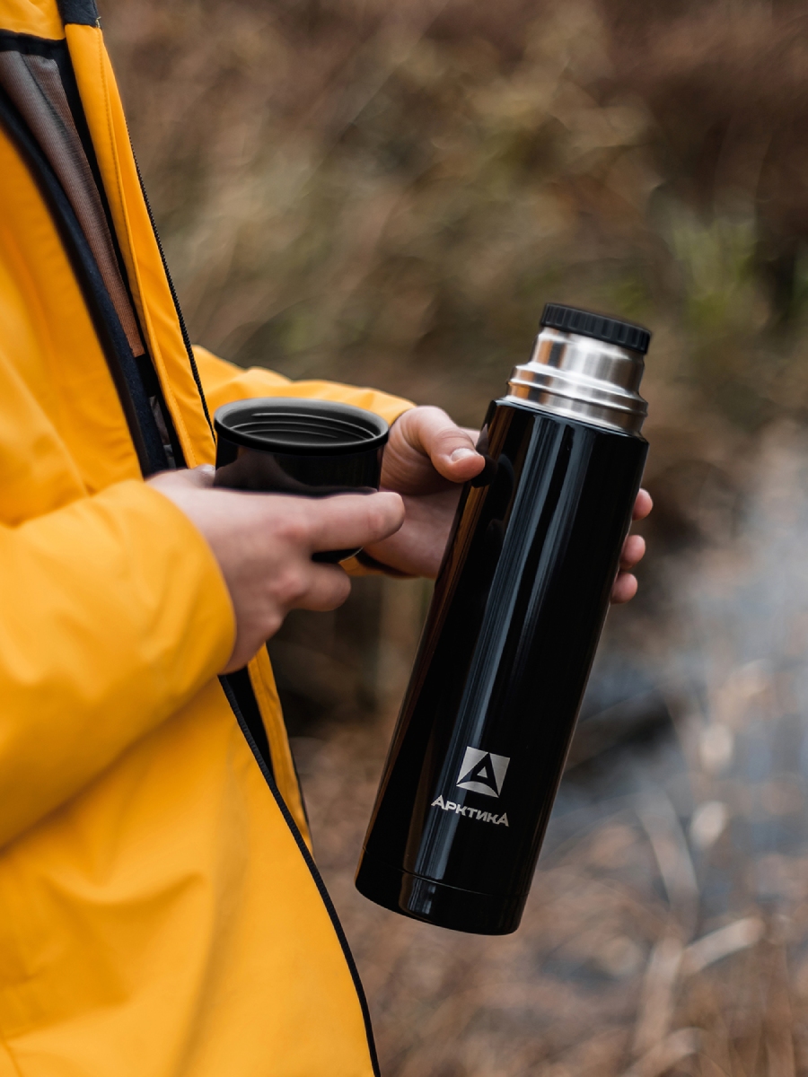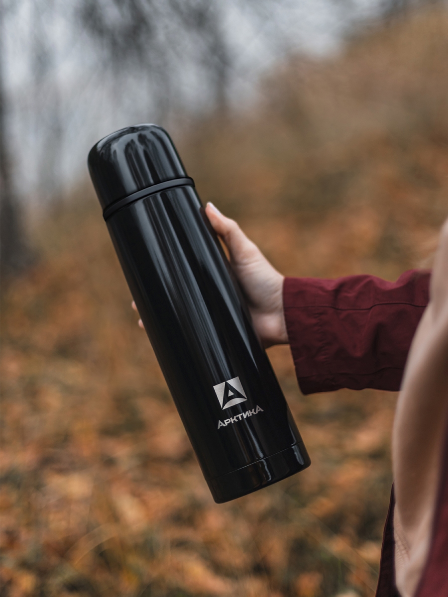 Термос 1л серии 102 чёрный глянцевый с узким горлом
