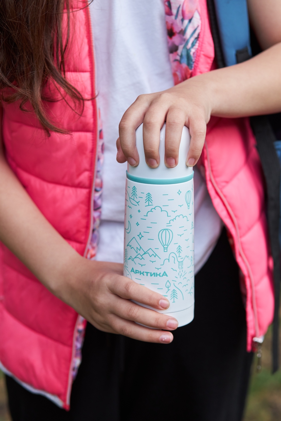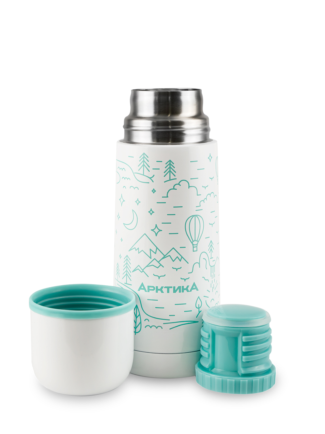 Термос 0.35 серии 102 белый с узким горлом и рисунком