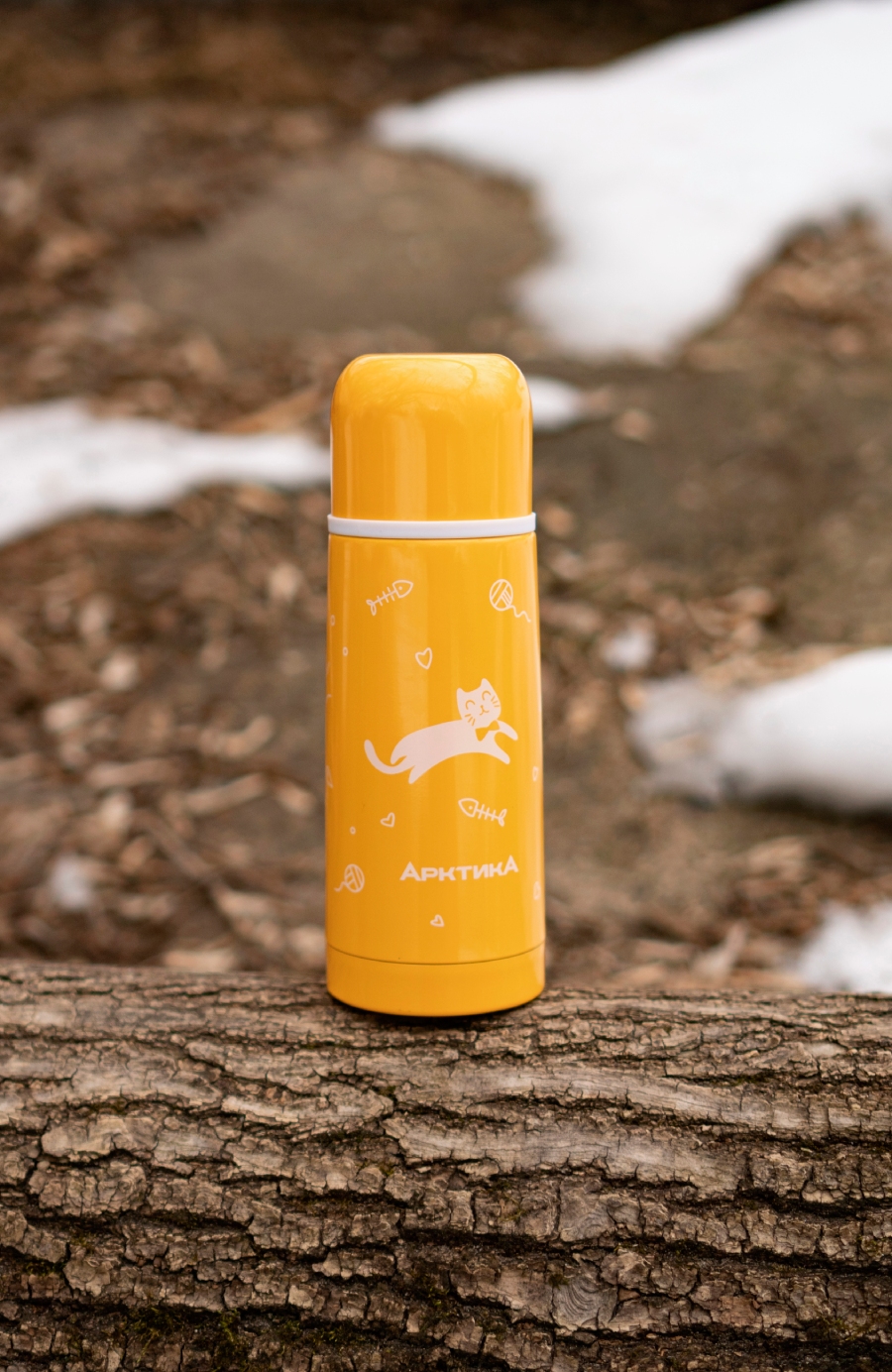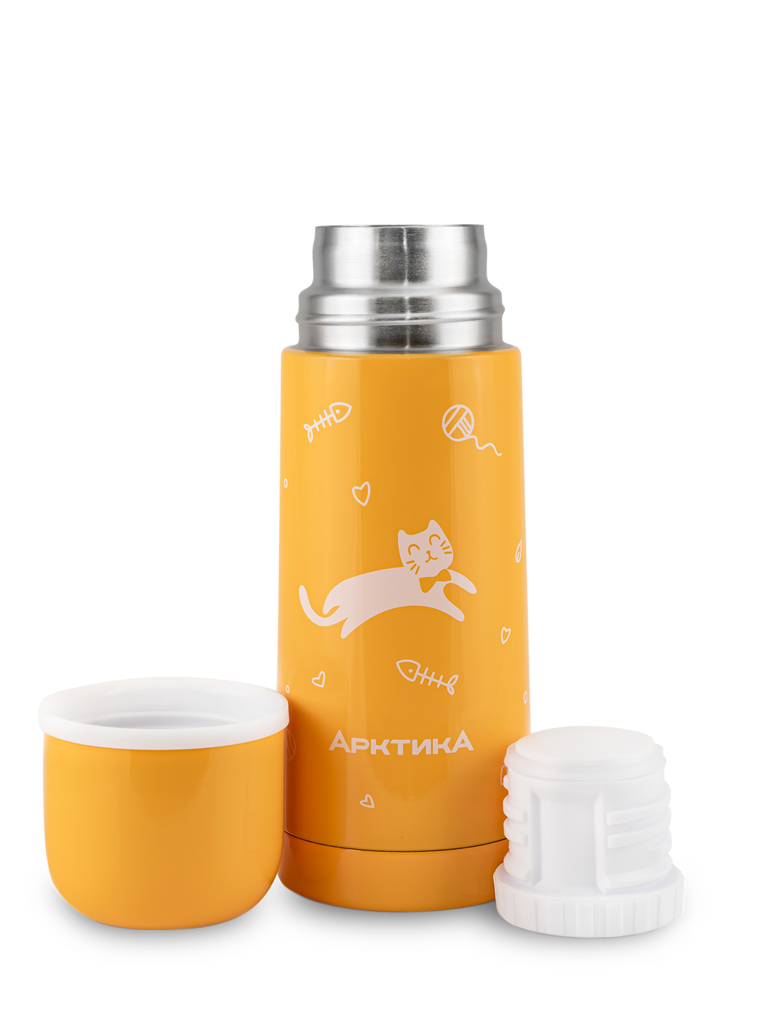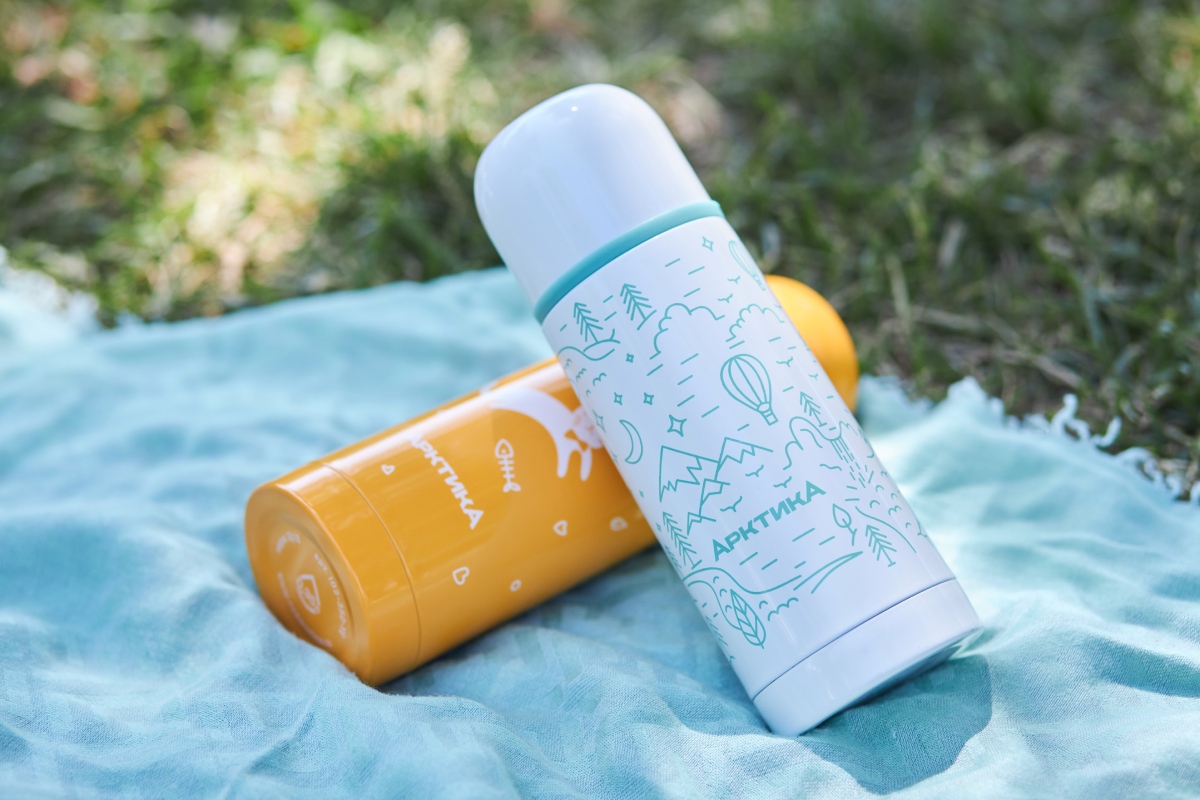 Термос 0.35л серии 102 жёлтый с узким горлом и рисунком