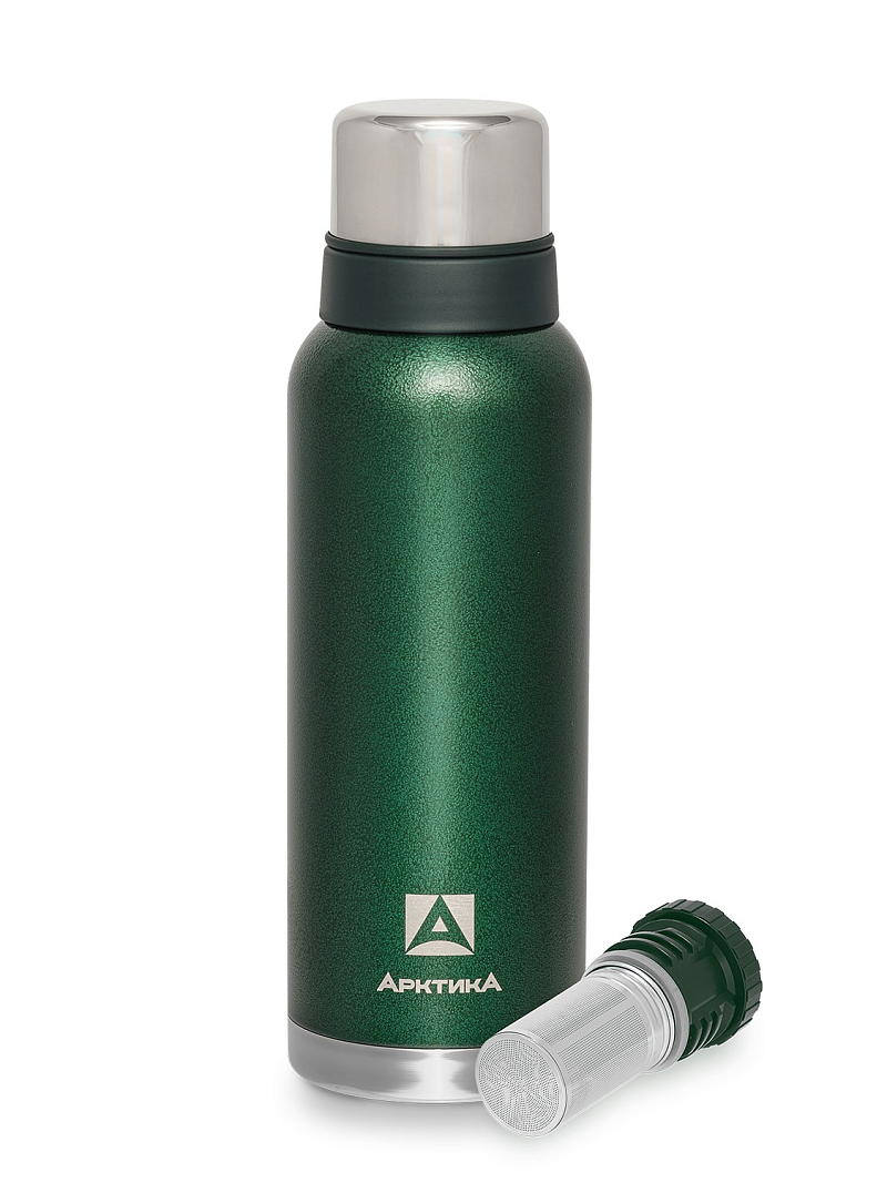 Зеленый термос с узким горлом с ситечком на 1.2л (уценка)