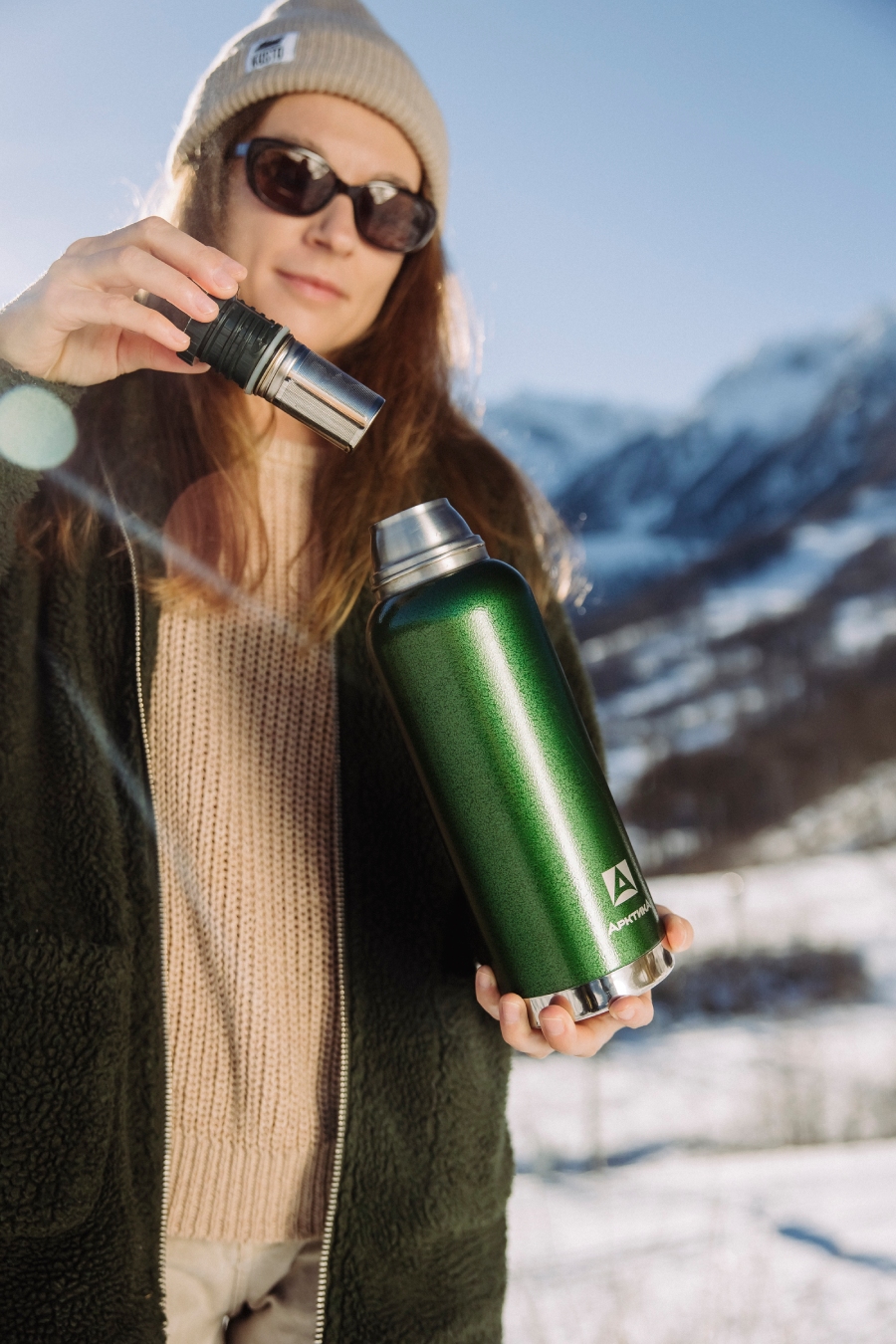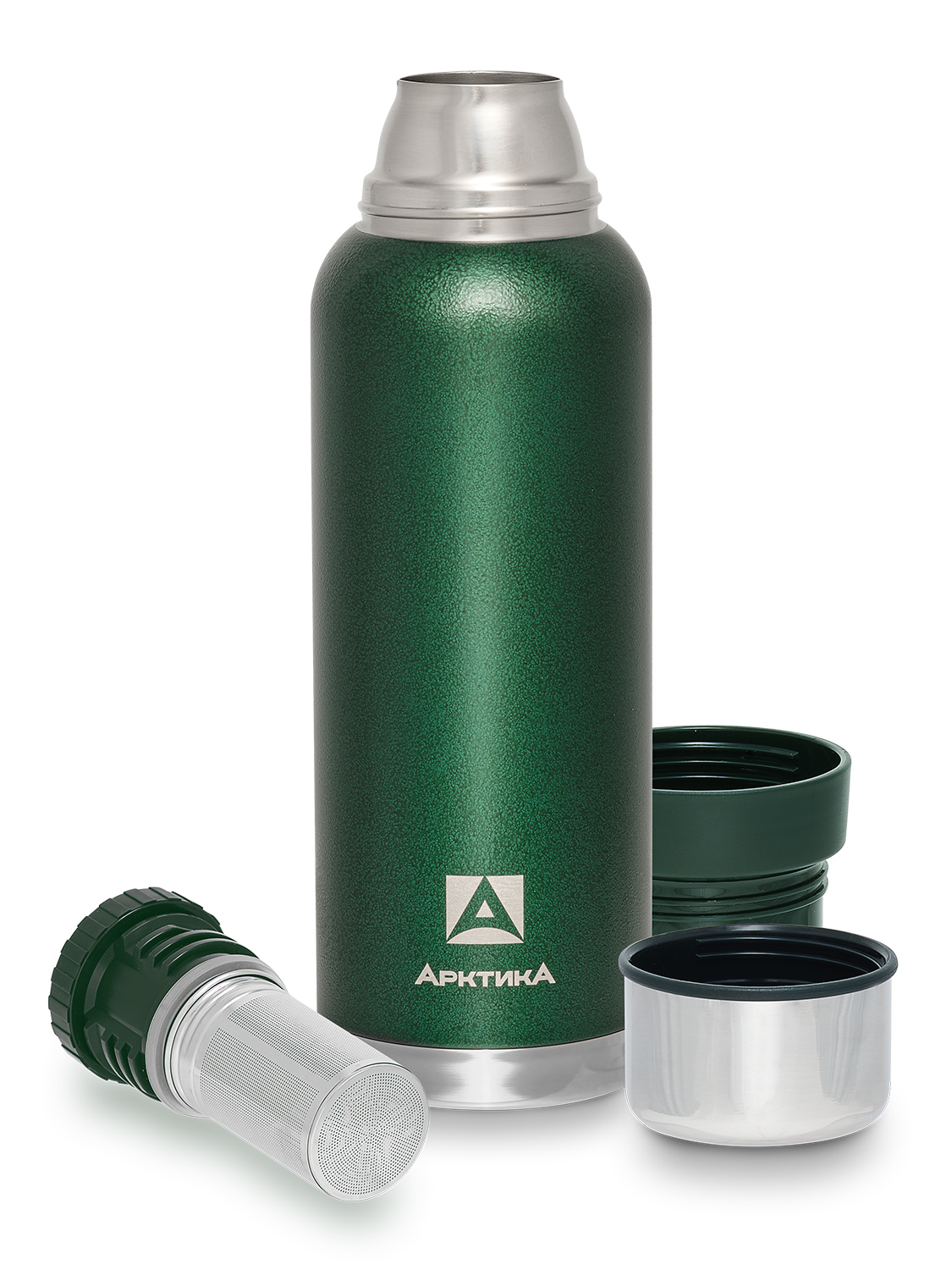 Термос 1.2л серии 106 зелёный с ситечком и молотковой эмалью