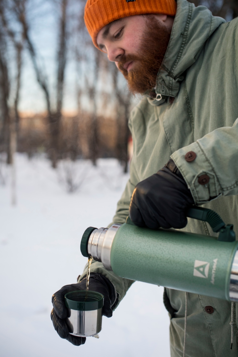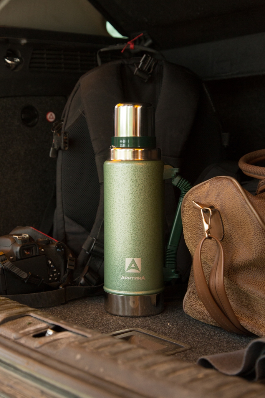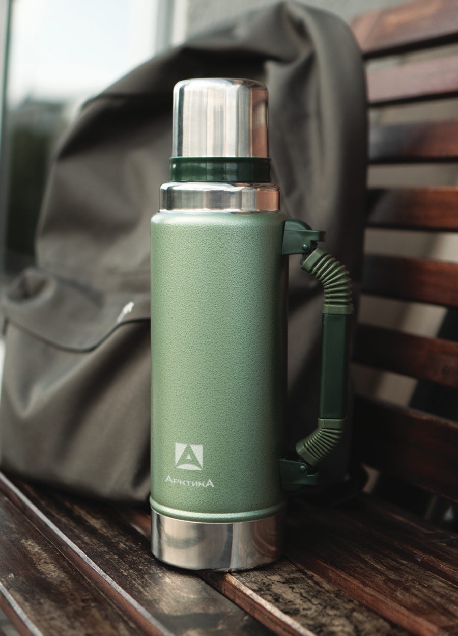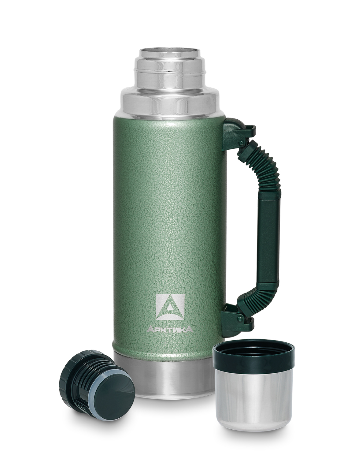 Термос 1.25л серии 106P «УАЗИК» зелёный с ручкой