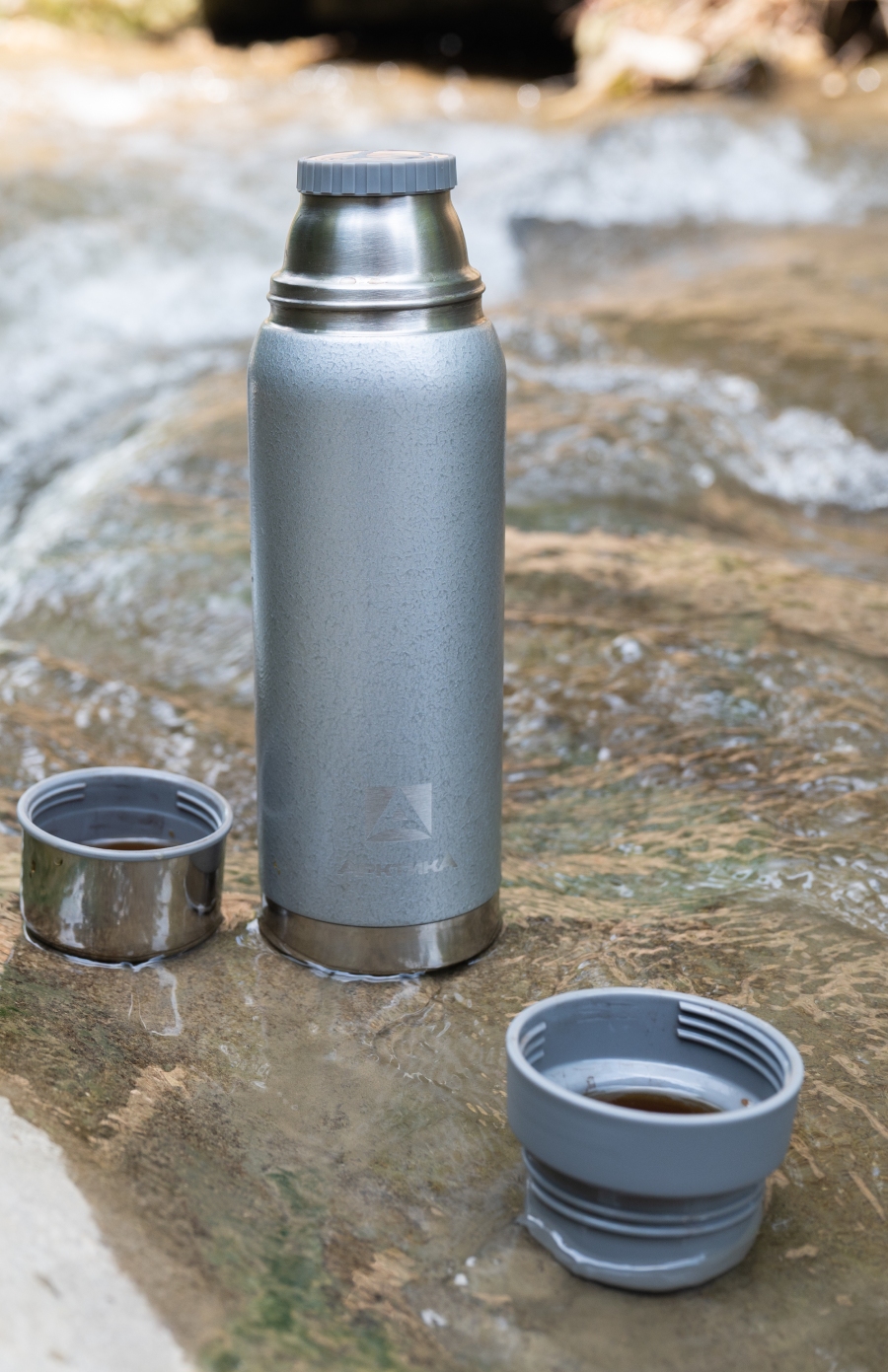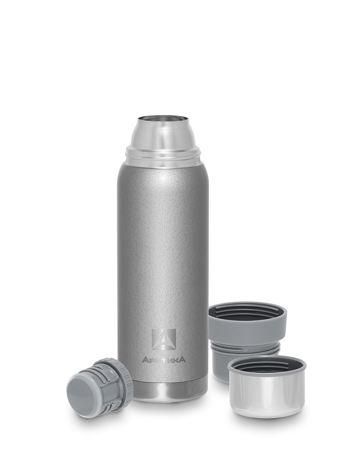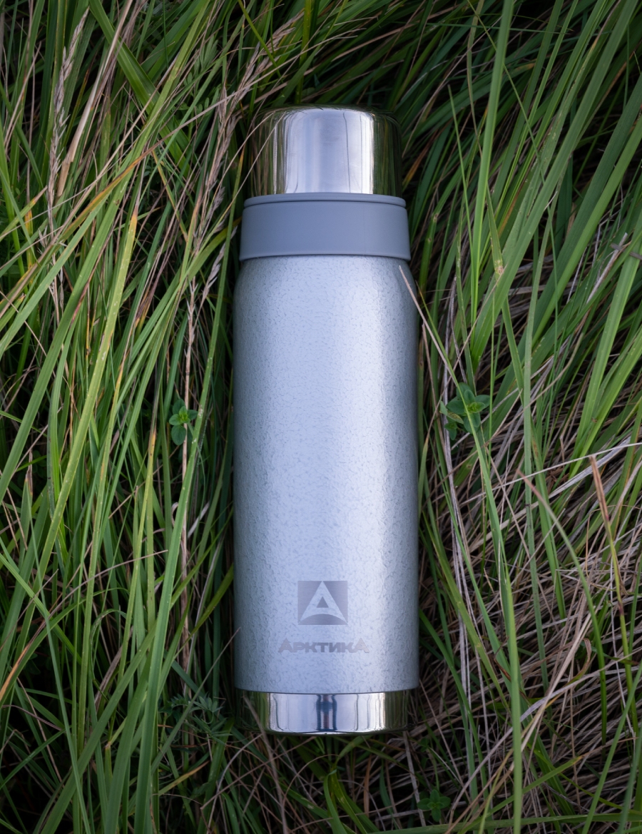 Термос 0.75л серии 106 серебряный с узким горлом и молотковой эмалью