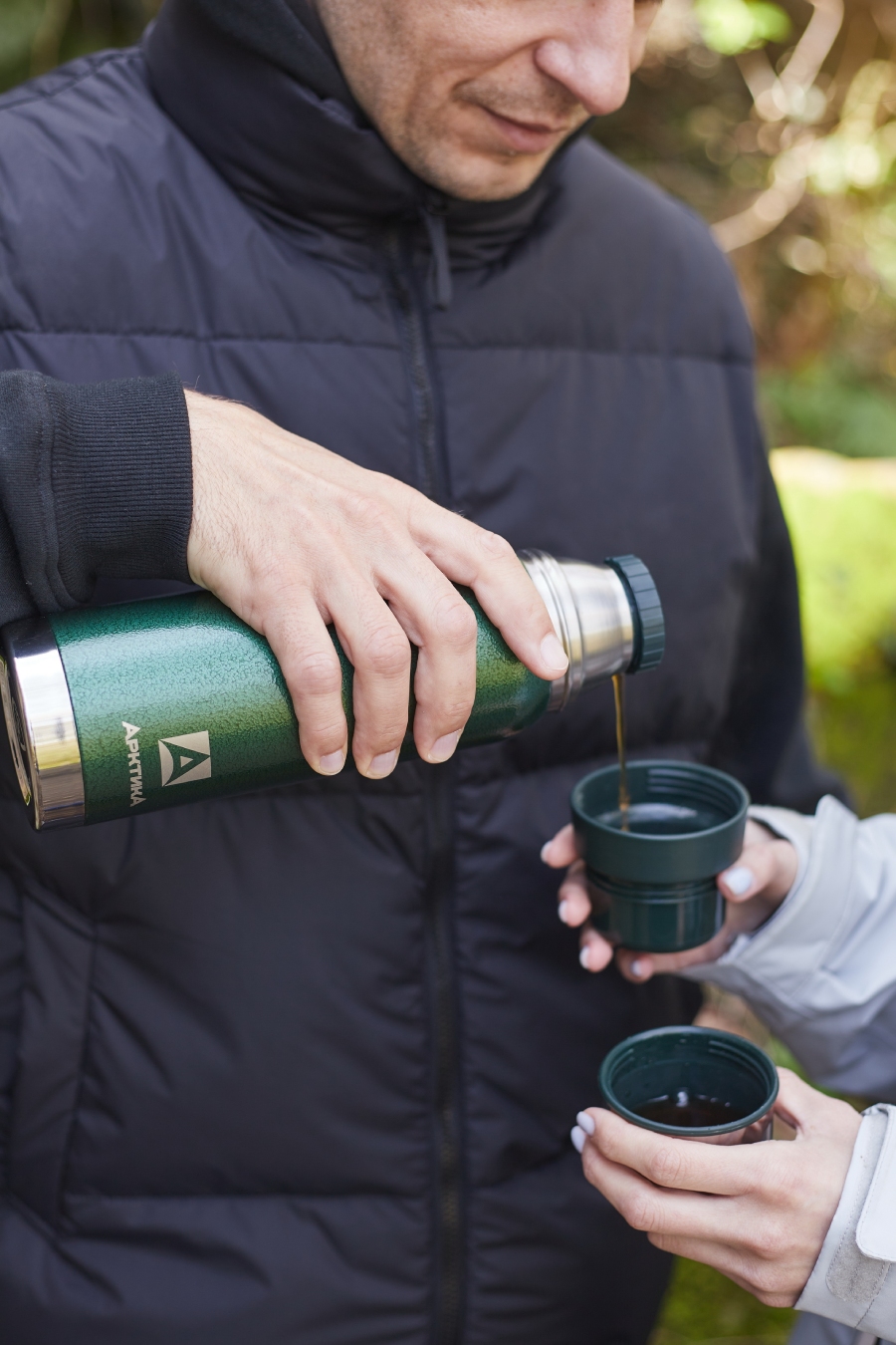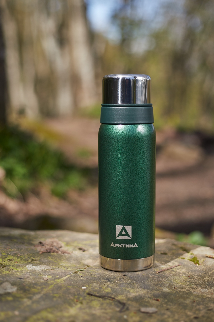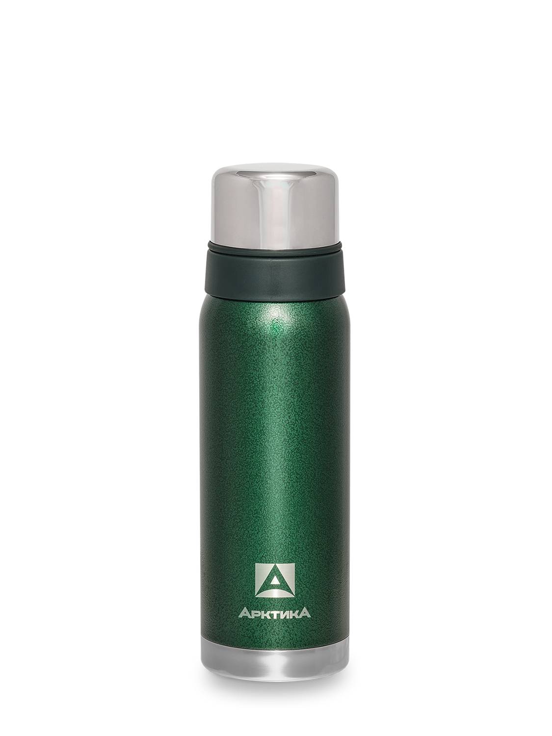 Термос 0.75л серии 106 зелёный с узким горлом и молотковой эмалью