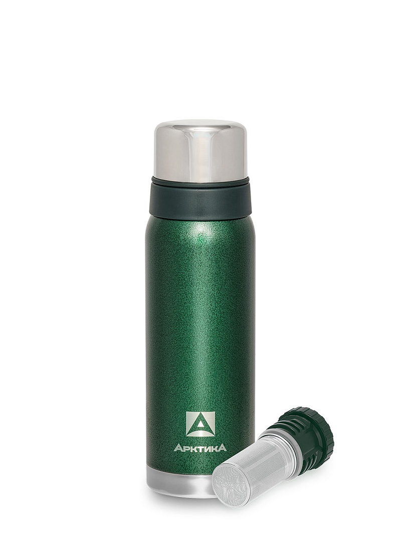 Зеленый термос с узким горлом и ситечком 0.75л (уценка)