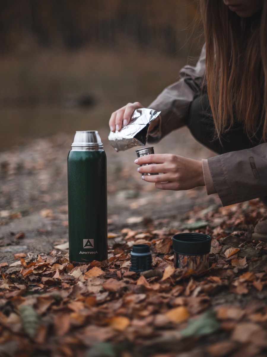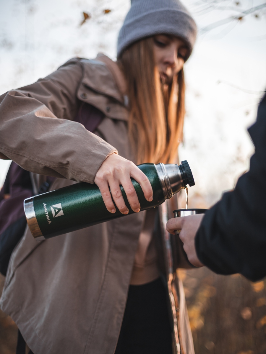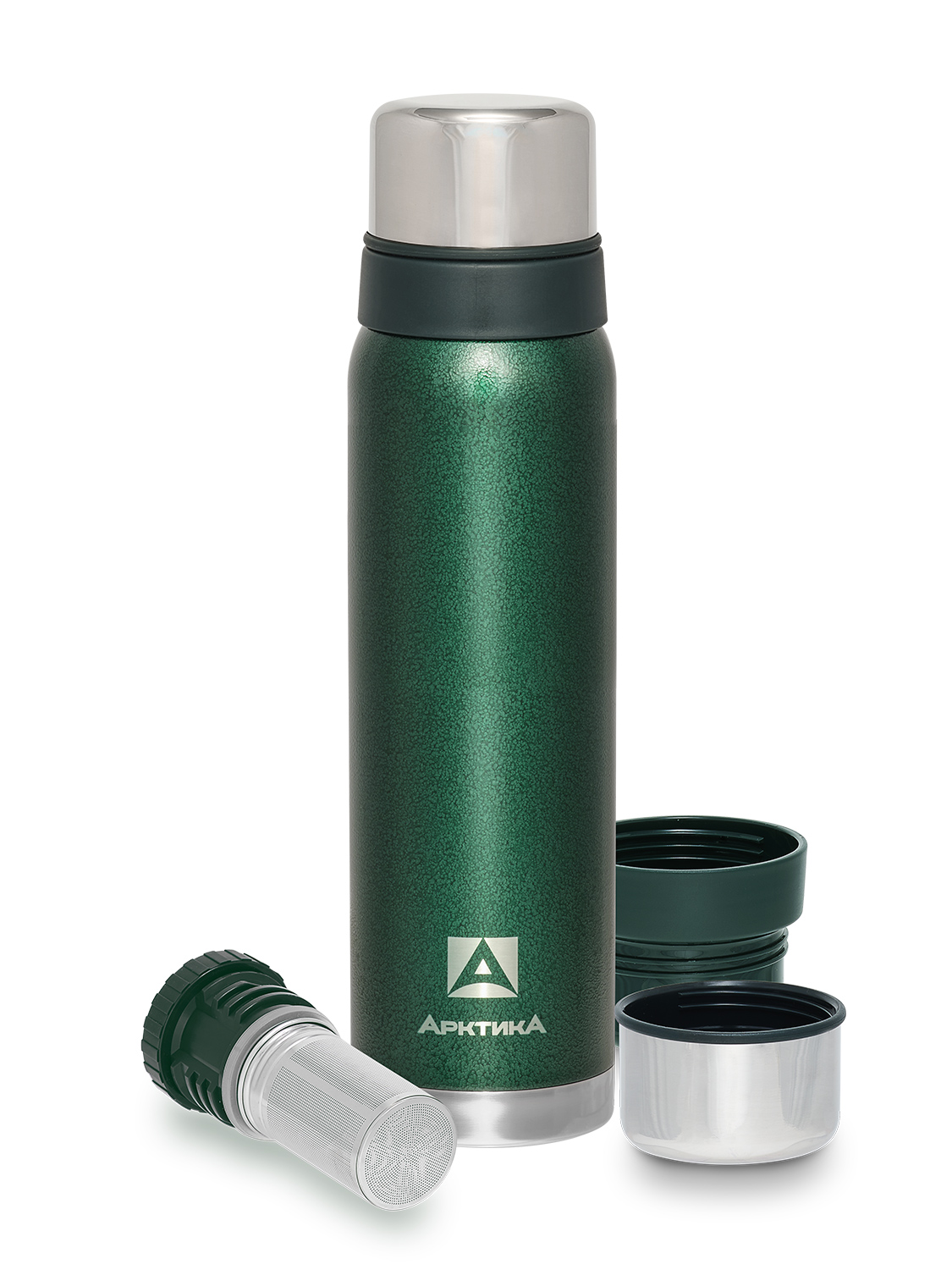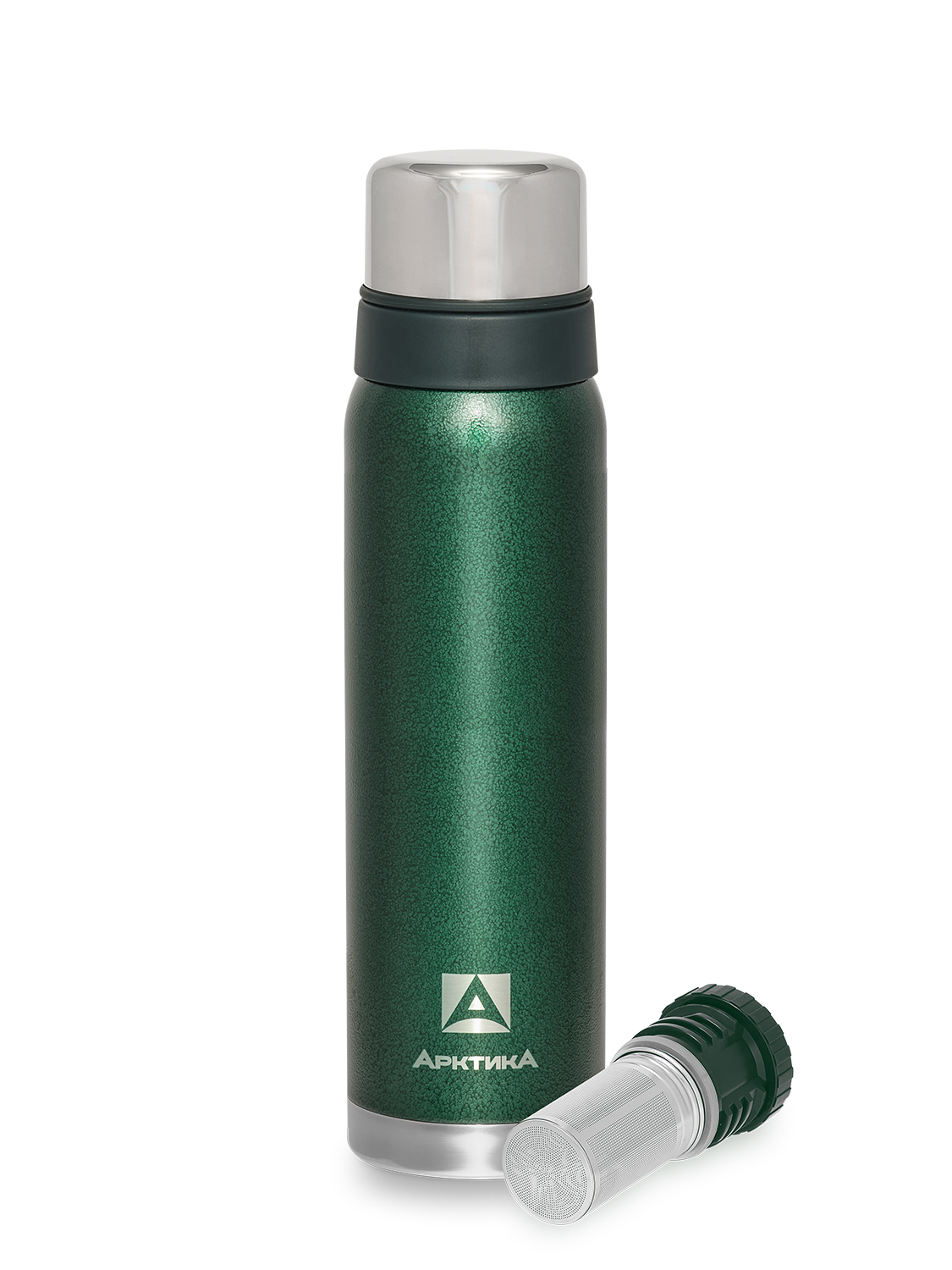 Термос серии 106 на 0.9л зелёный с ситечком и молотковой эмалью