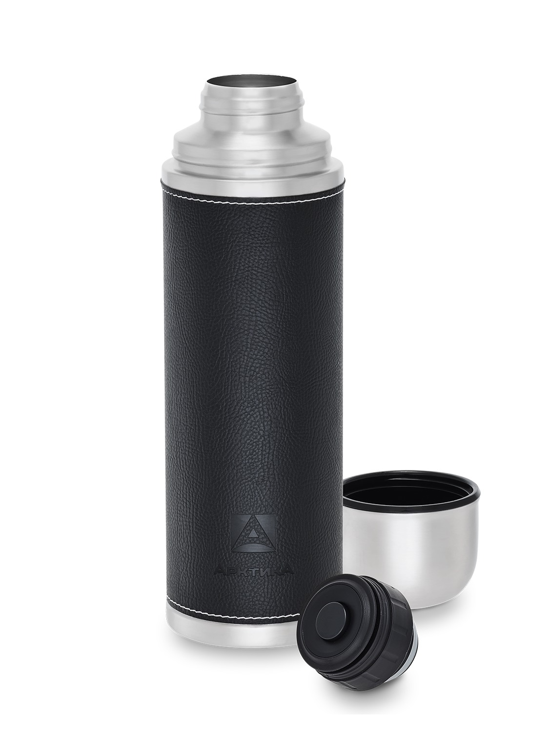 Черный термос с оплёткой из экокожи на 1л (уценка)