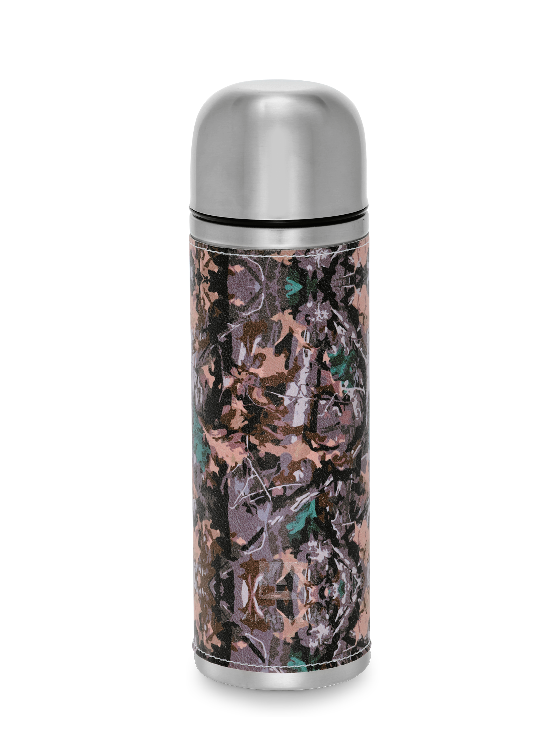 Термос с оплёткой из экокожи цвета хаки на 1л (уценка)