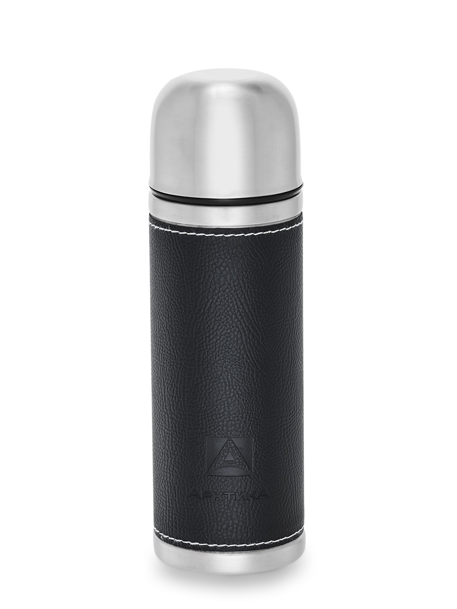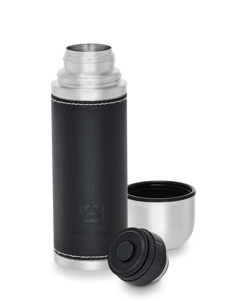 Термос 0.5л серии 108 с чёрной оплёткой из экокожи
