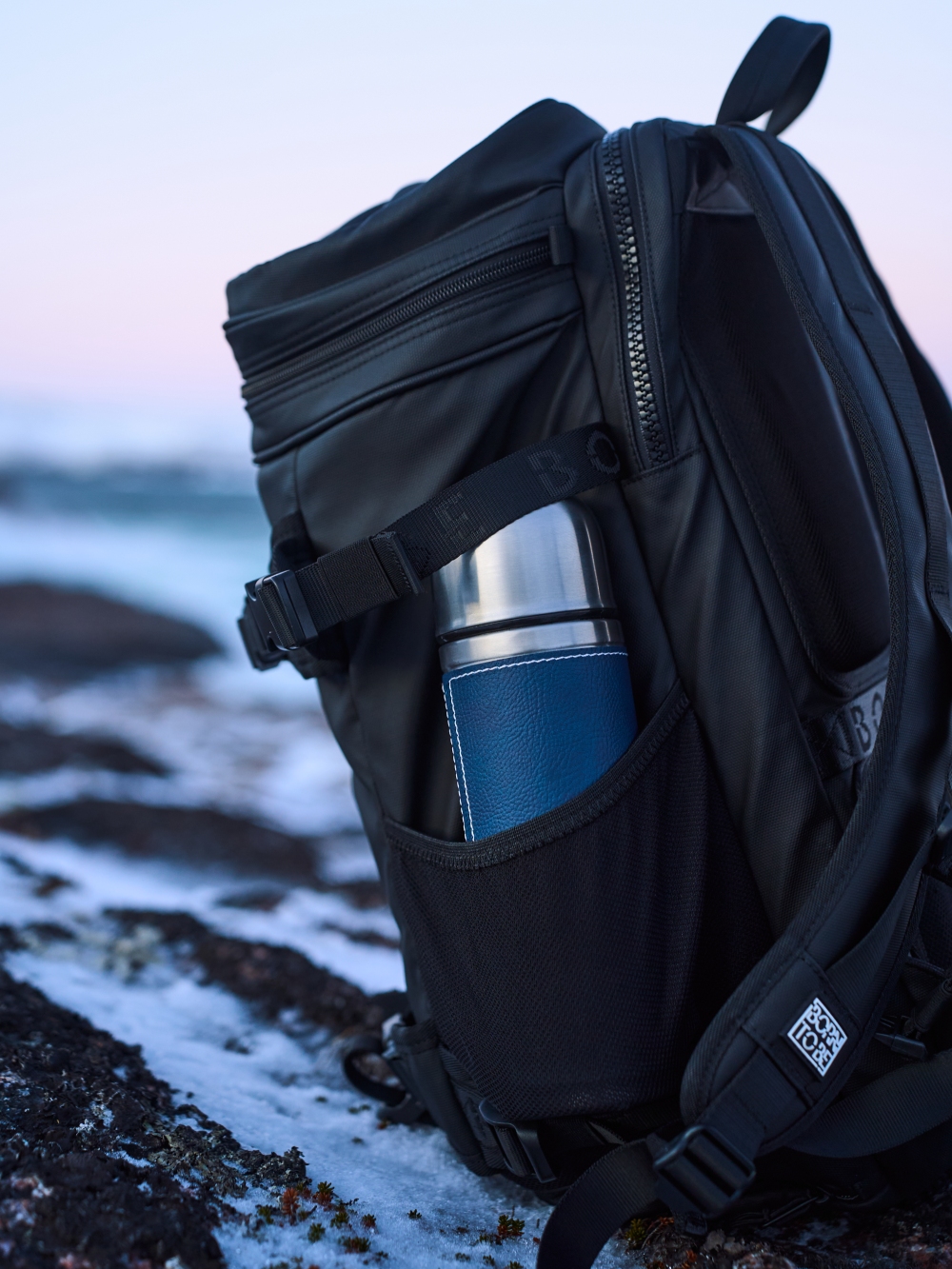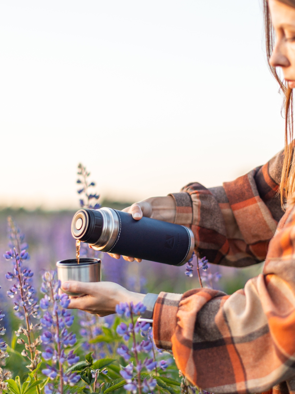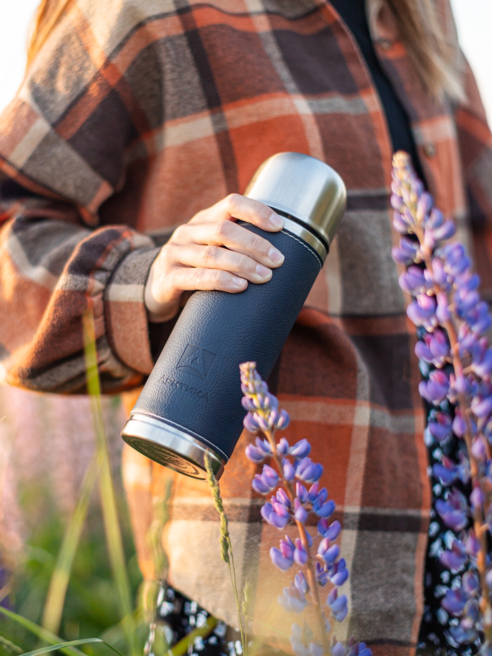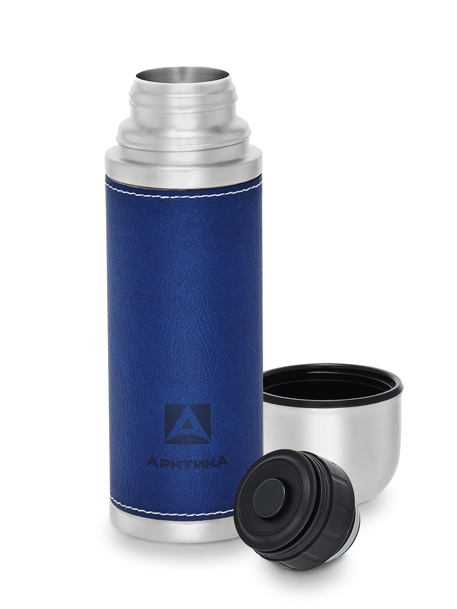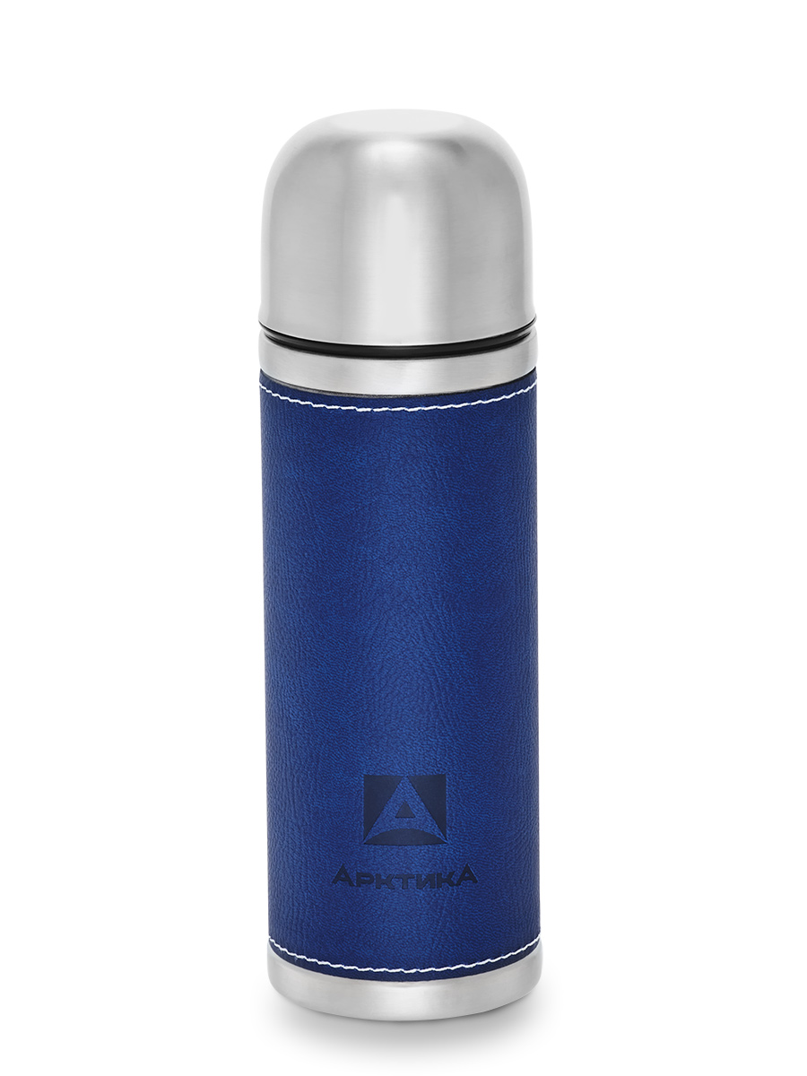 Термос 0.5л серии 108 с синей оплёткой из экокожи