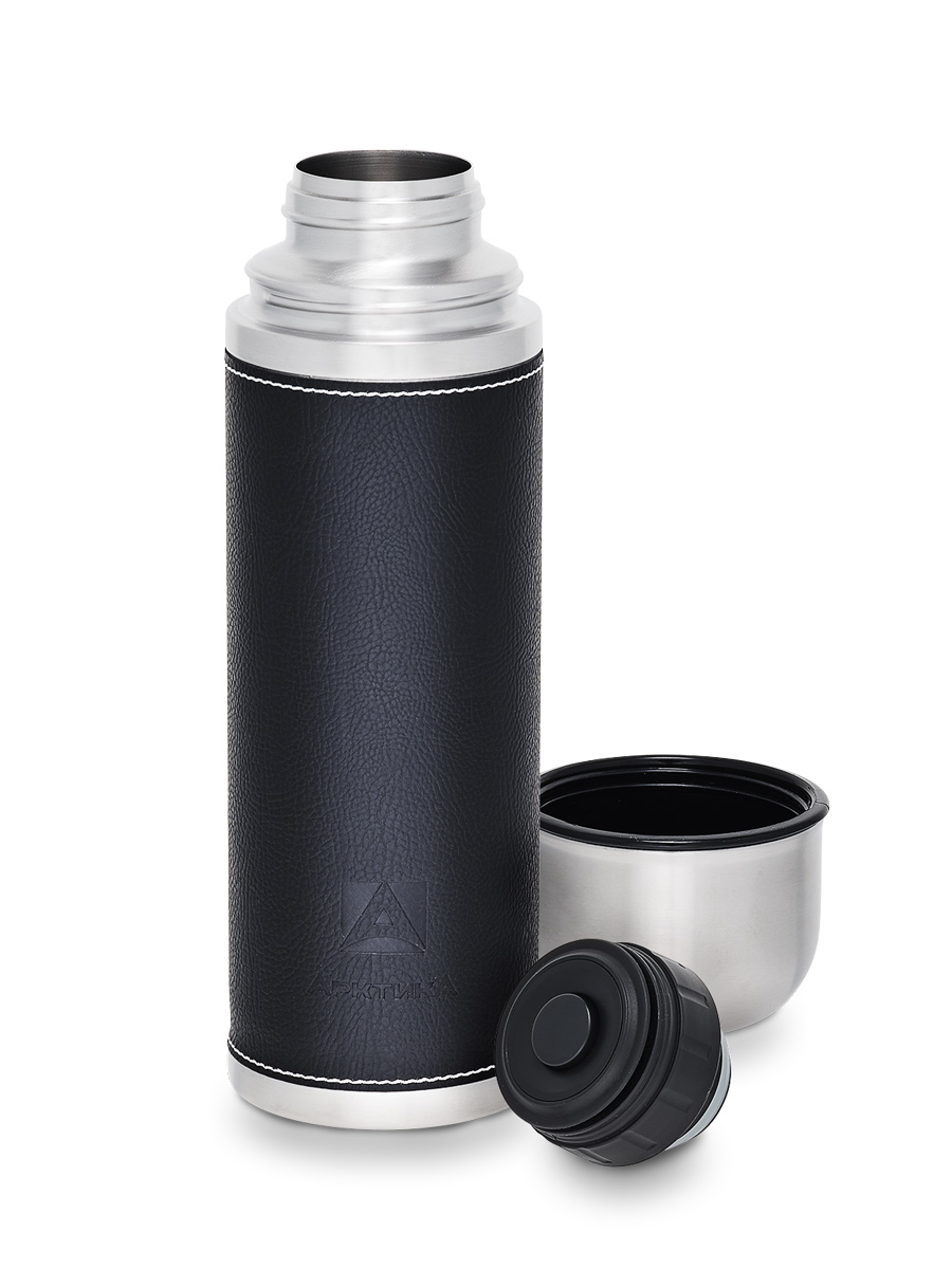 Термос 0.7л серии 108 с чёрной оплёткой из экокожи