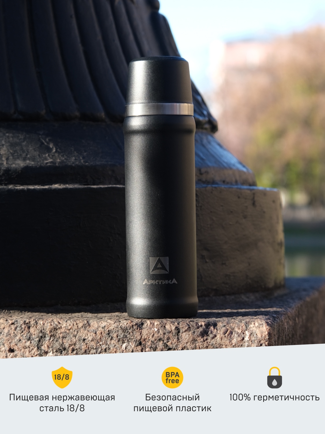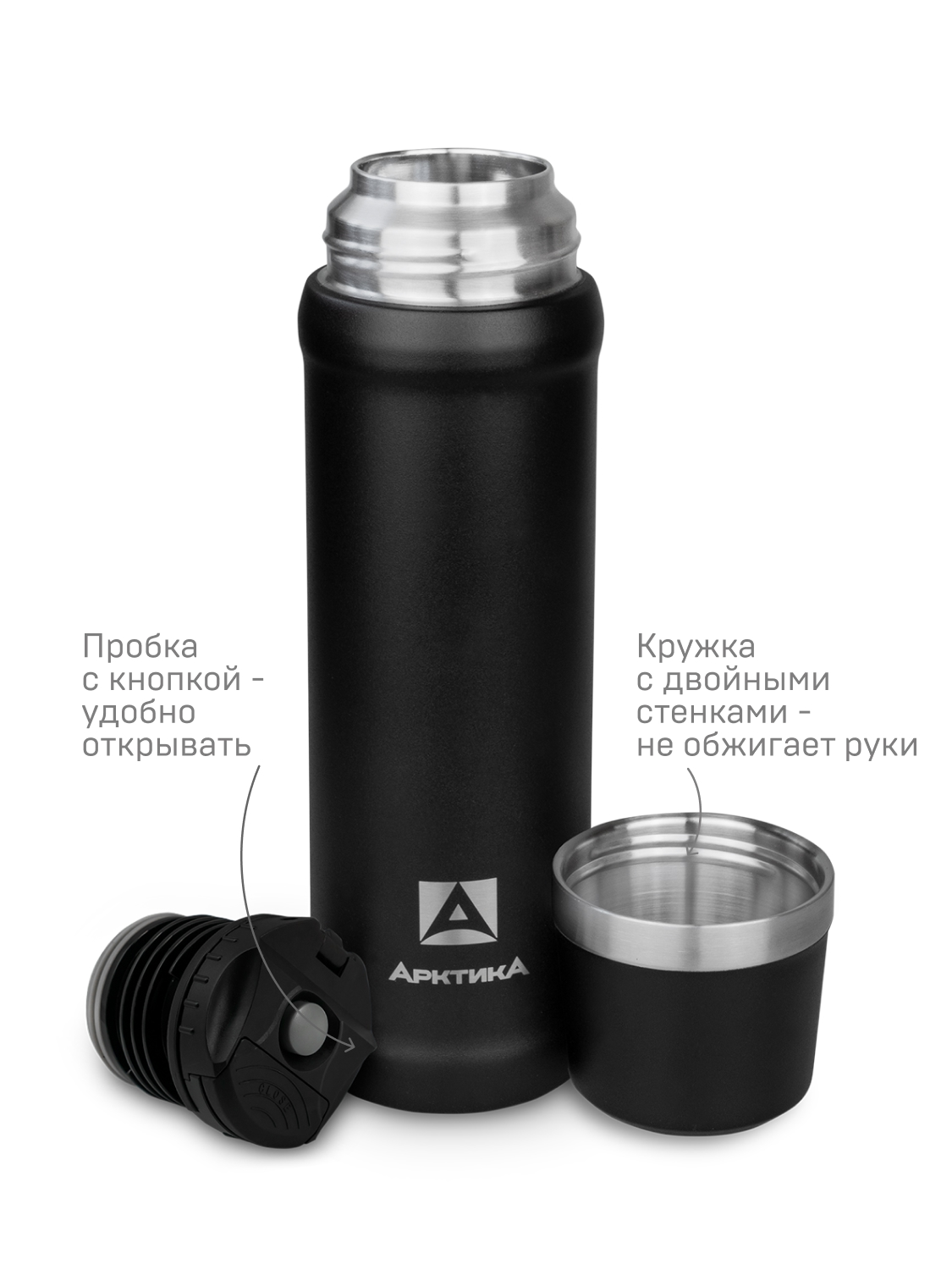 Термос 0.6л серии 111 чёрный с питьевой системой