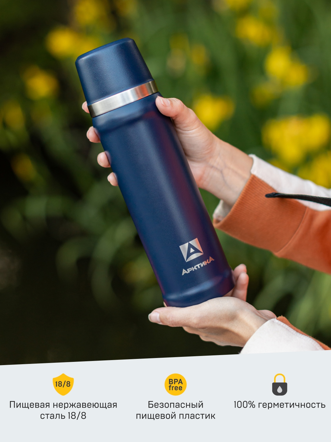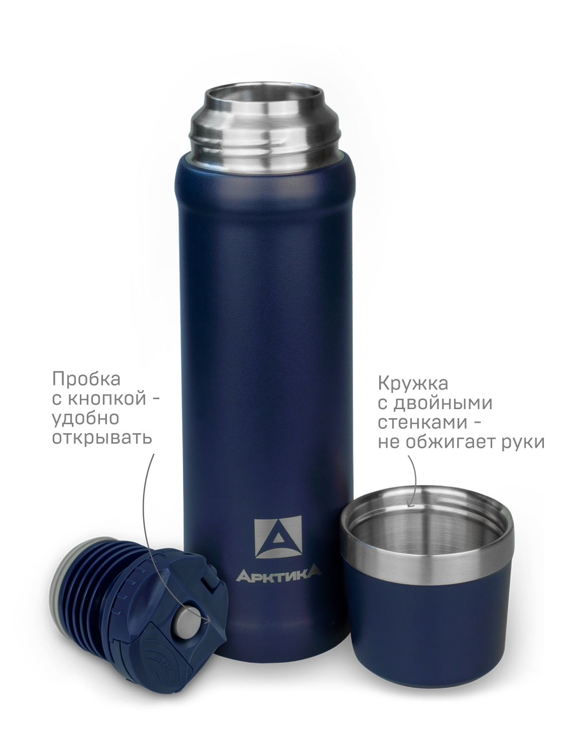 Термос 0.6л серии 111 синий с питьевой системой