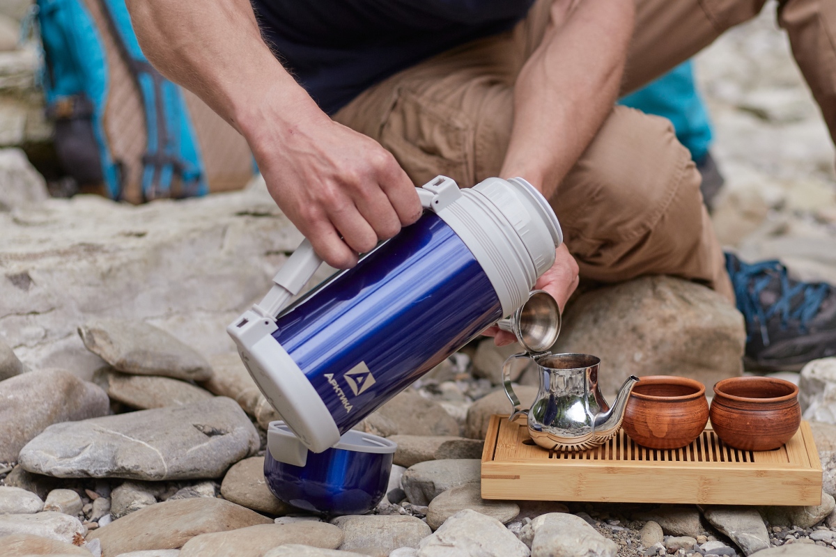 Благодаря двойной пробке вы сможете регулировать ширину горловины термоса в зависимости от задачи. Используйте термос для чая и других напитков, частично выкручивая пробку с каналами для налива, или открутите ее полностью, чтобы положить внутрь горячее питание или крупные ягоды шиповника для настоя.