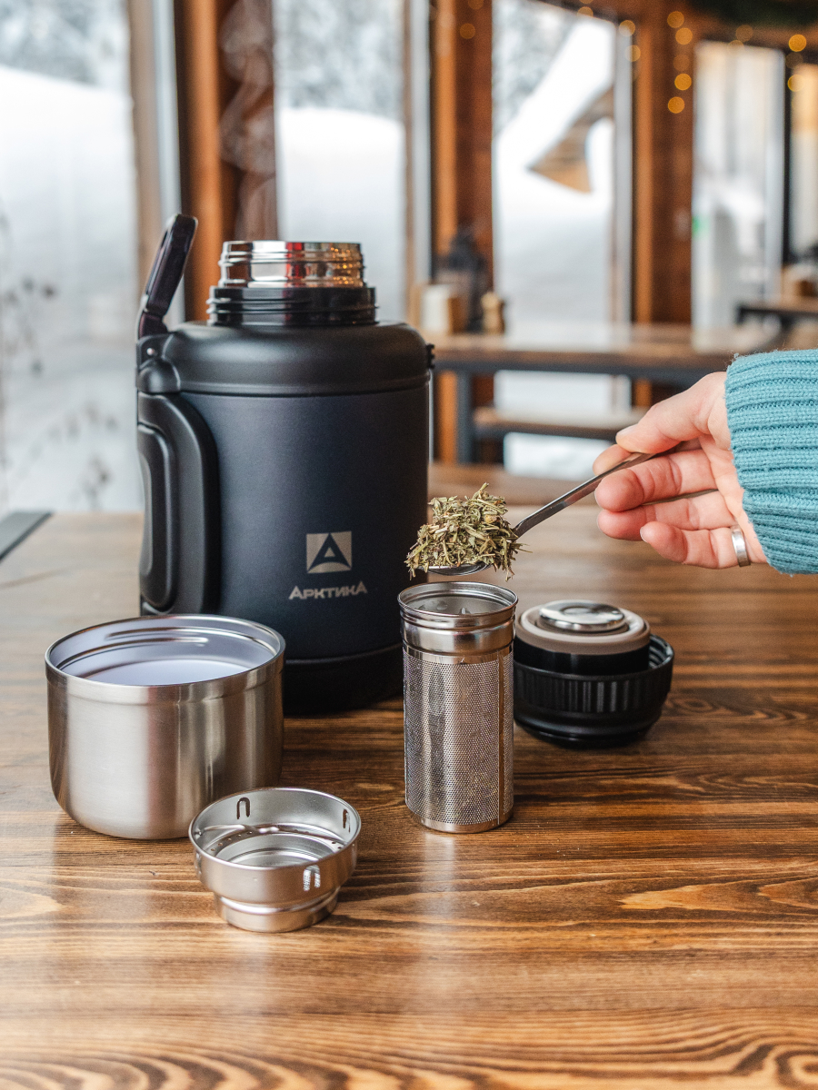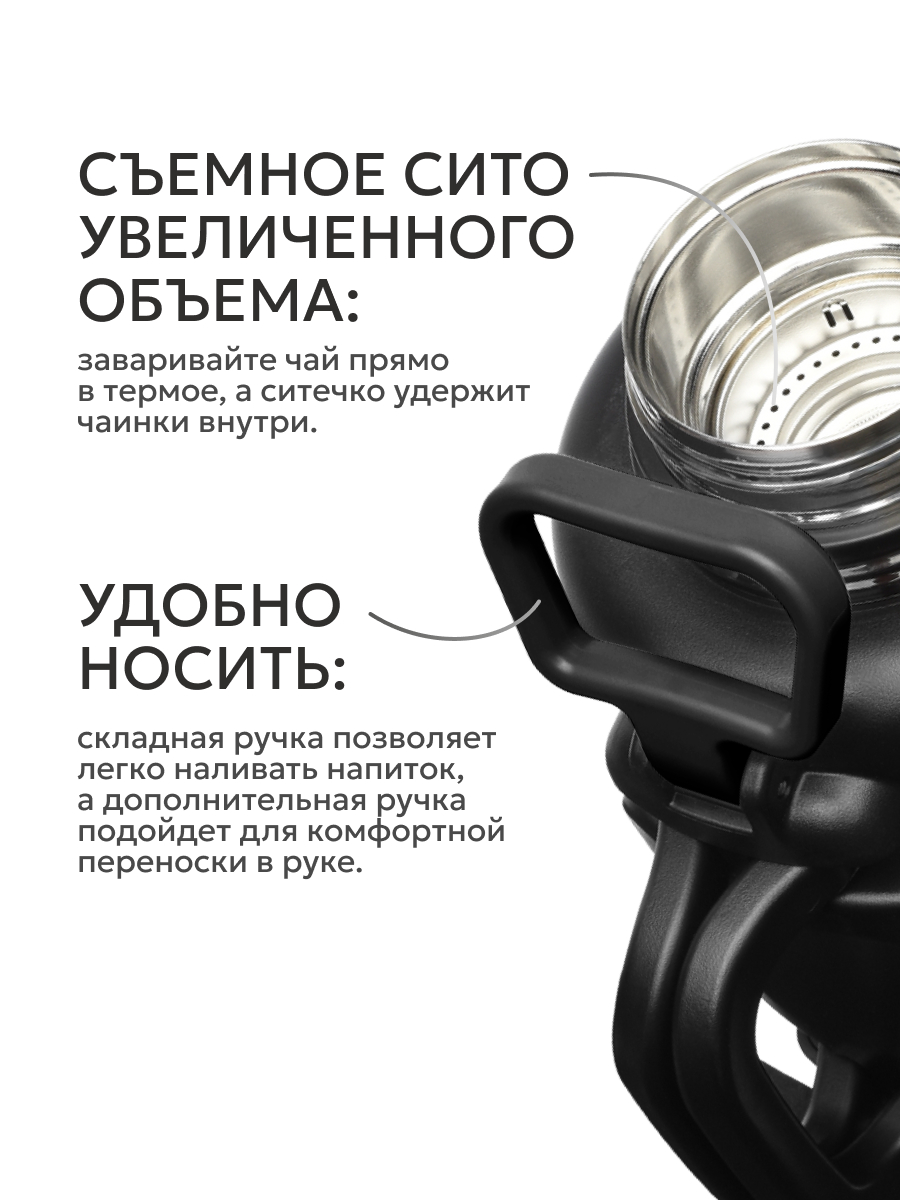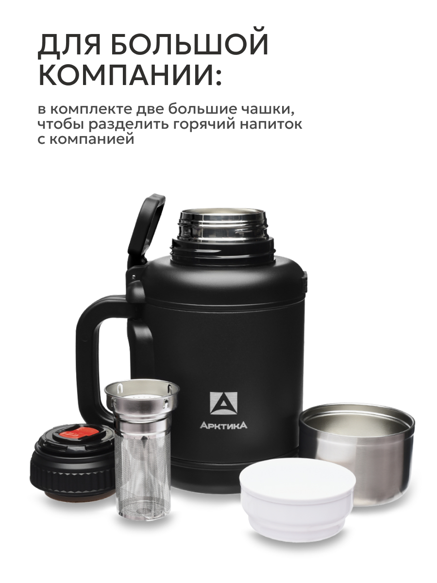 Термос 1.9л серии 204 чёрный со складной ручкой и ситом