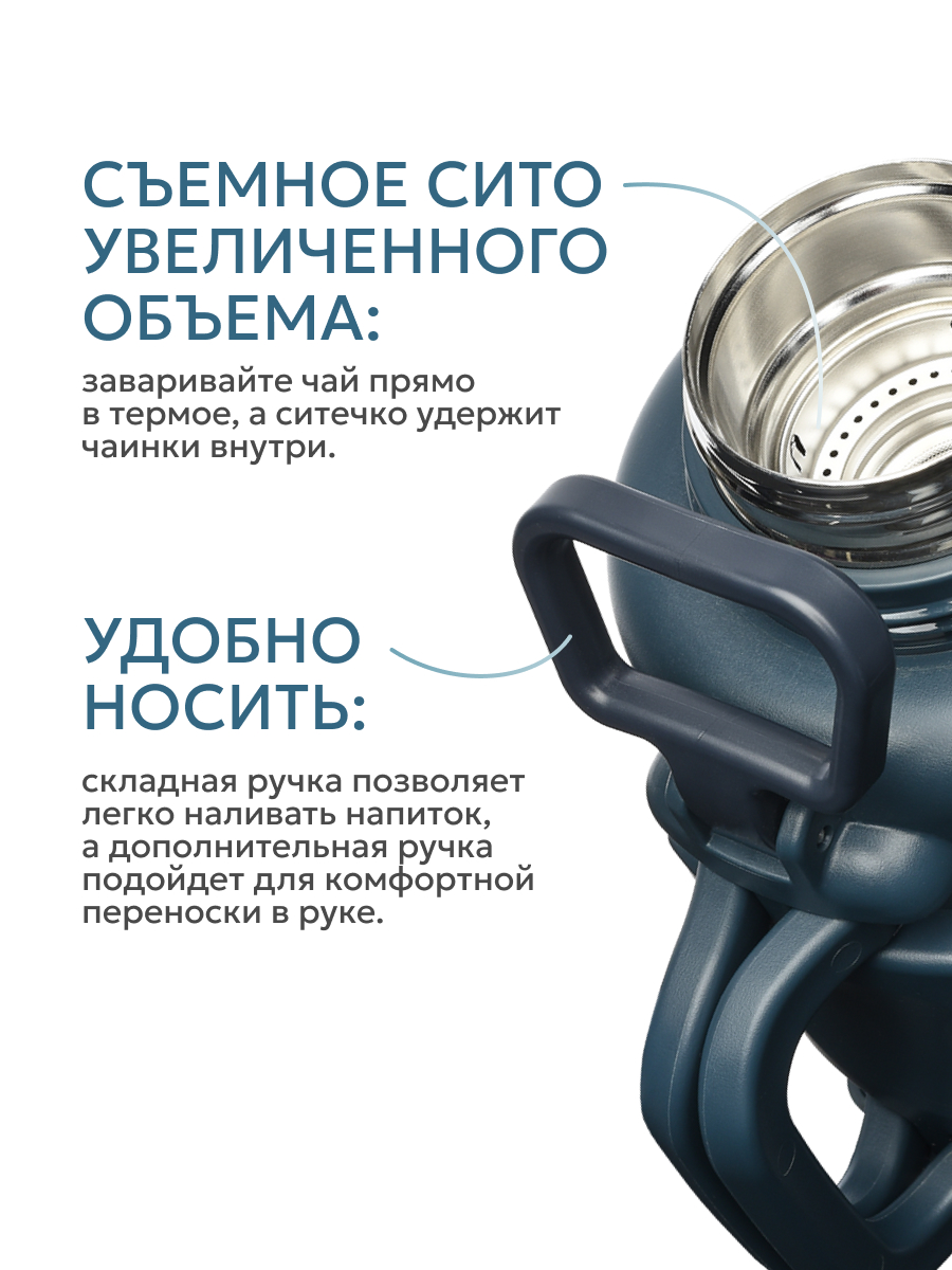 Термос 1.9л серии 204 «Индиго» со складной ручкой и ситом