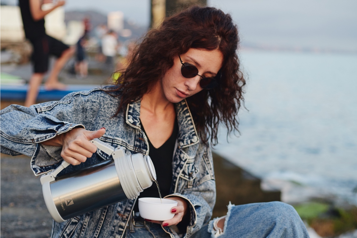 Благодаря двойной пробке вы сможете регулировать ширину горловины термоса в зависимости от задачи. Используйте термос для чая и других напитков, частично выкручивая пробку с каналами для налива, или открутите ее полностью, чтобы положить внутрь горячее питание или крупные ягоды шиповника для настоя.