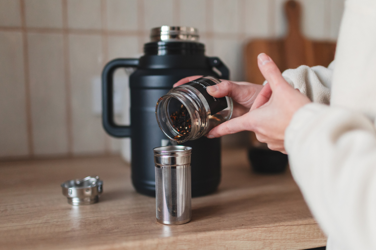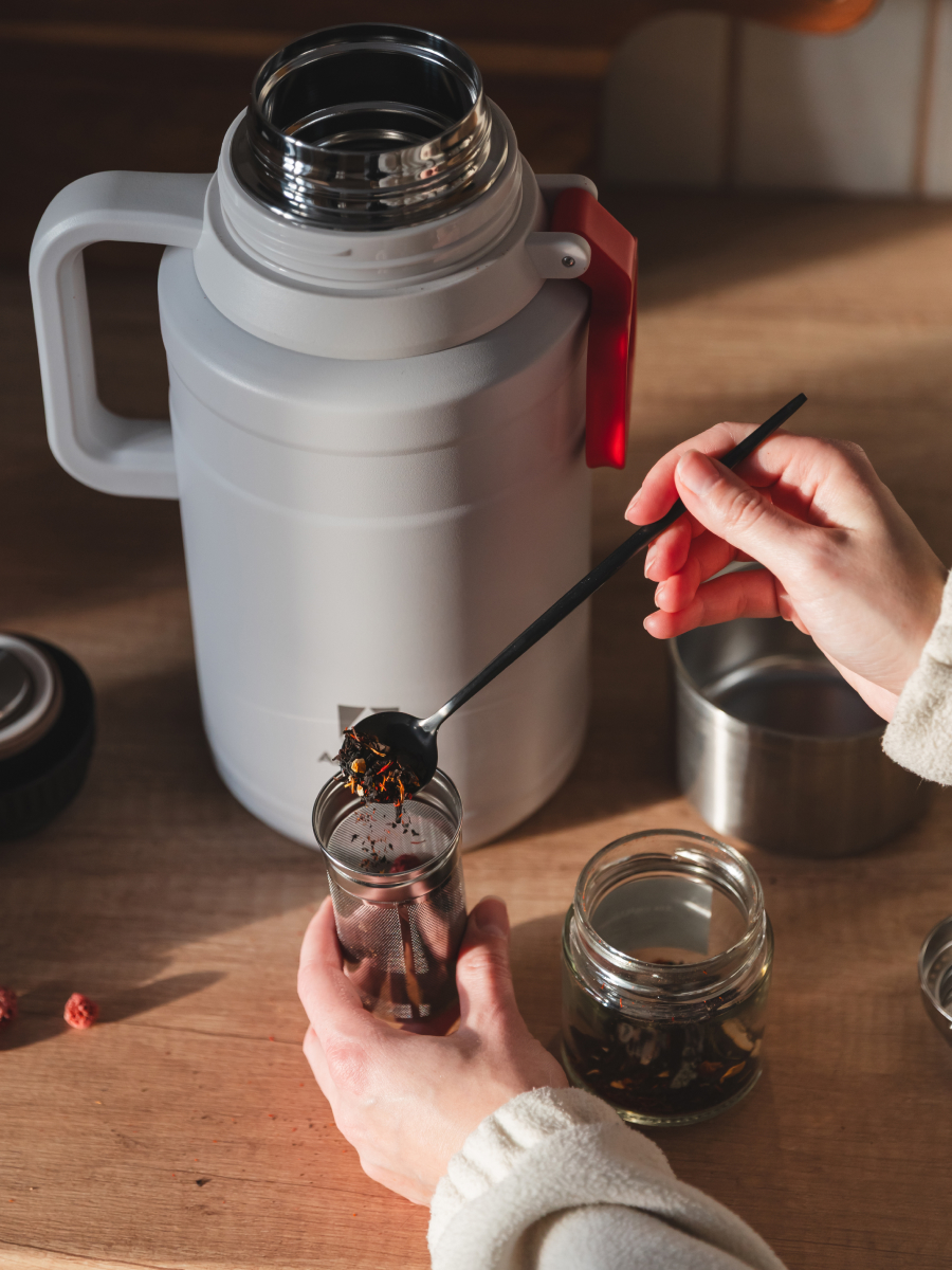 Заваривать любимые напитки можно прямо в термосе благодаря увеличенному съемному ситу — крупная заварка, молотый кофе, косточки ягод и цитрусовых останутся внутри.