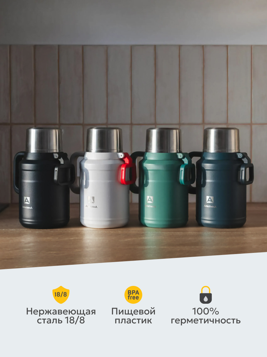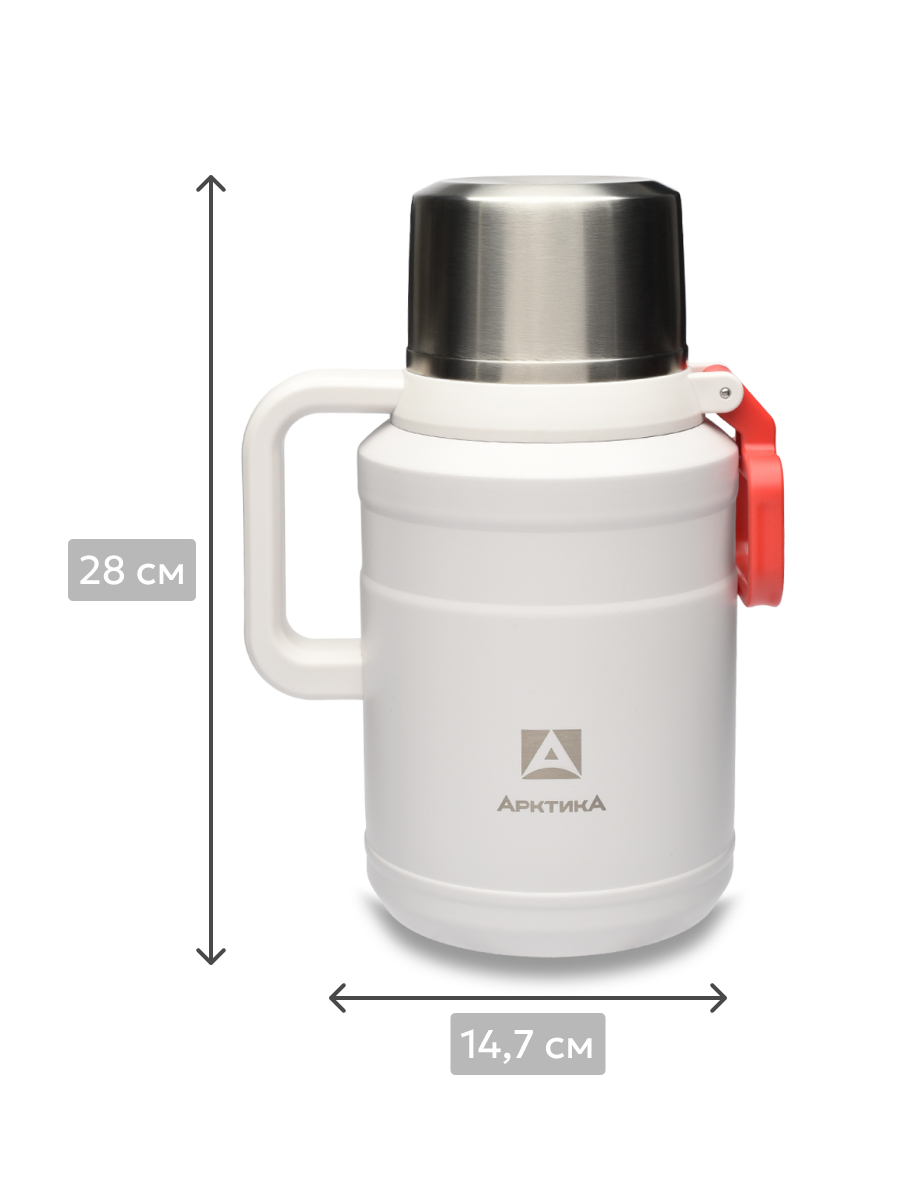 Крепкая ручка сбоку значительно облегчает использование: тяжелый термос проще поднять и наклонить, чтобы налить напиток в чашку. Ручка сверху идеальна для переноски.