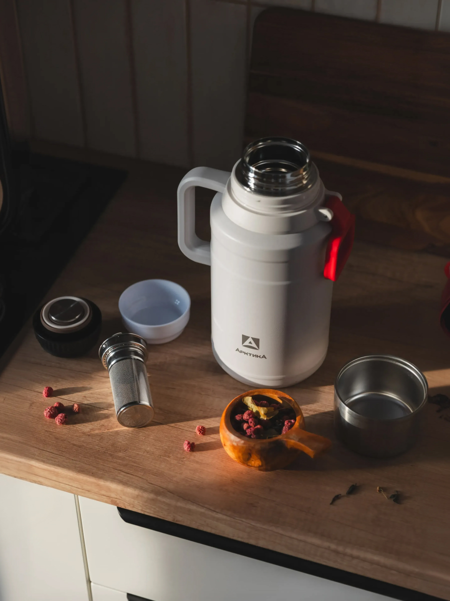 Заваривать любимые напитки можно прямо в термосе благодаря увеличенному съемному ситу — крупная заварка, молотый кофе, косточки ягод и цитрусовых останутся внутри.