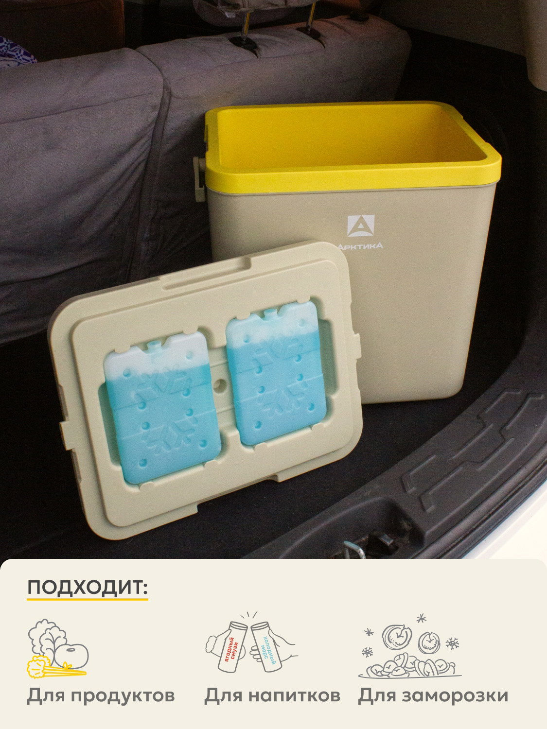 Самый легкий термоконтейнер в линейке «Арктики», предназначенный для хранения продуктов и прохладительных напитков в течение дня. Компактный размер и удобная ручка облегчают переноску, а плотная крышка исключает теплопотери. Изготовлен полностью из пищевого пластика, безопасного для здоровья и прямого контакта с едой (не выделяет бисфенол а — BPA free). В комплект входит 2 гелевых аккумулятора холода объёмом по 150 мл.