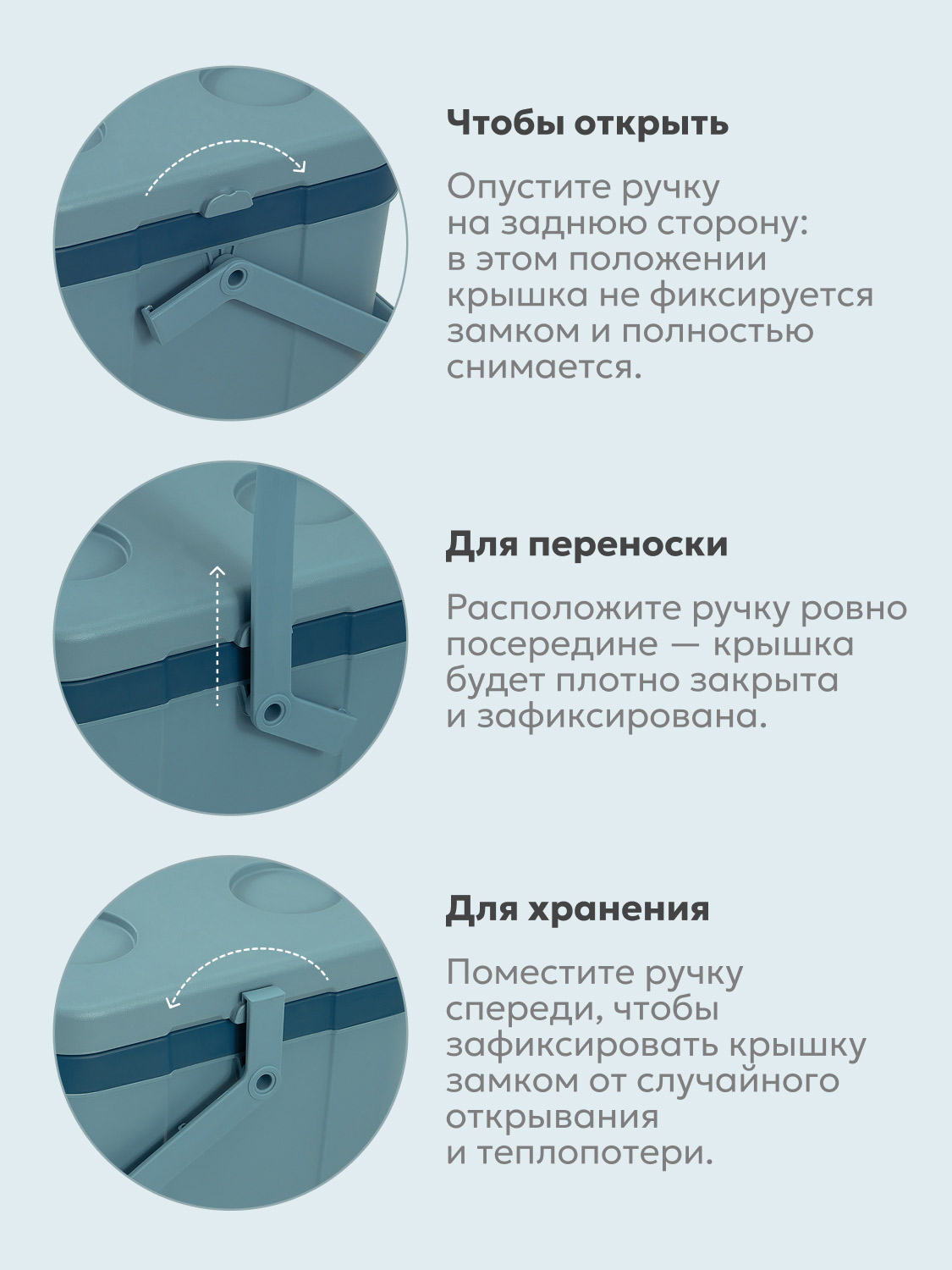Освежитесь в жару! Возьмите его с собой в парк, на спортивную площадку или на пляж — термоконтейнер защитит от солнца воду и прохладительные напитки, любимое мороженое, легкие закуски. Любите подкрепиться на свежем воздухе? Сохраните свежим мясо для шашлыка, салаты, овощи и фрукты. Также в термоконтейнере дольше не остывает горячее — домашняя выпечка и готовые блюда.